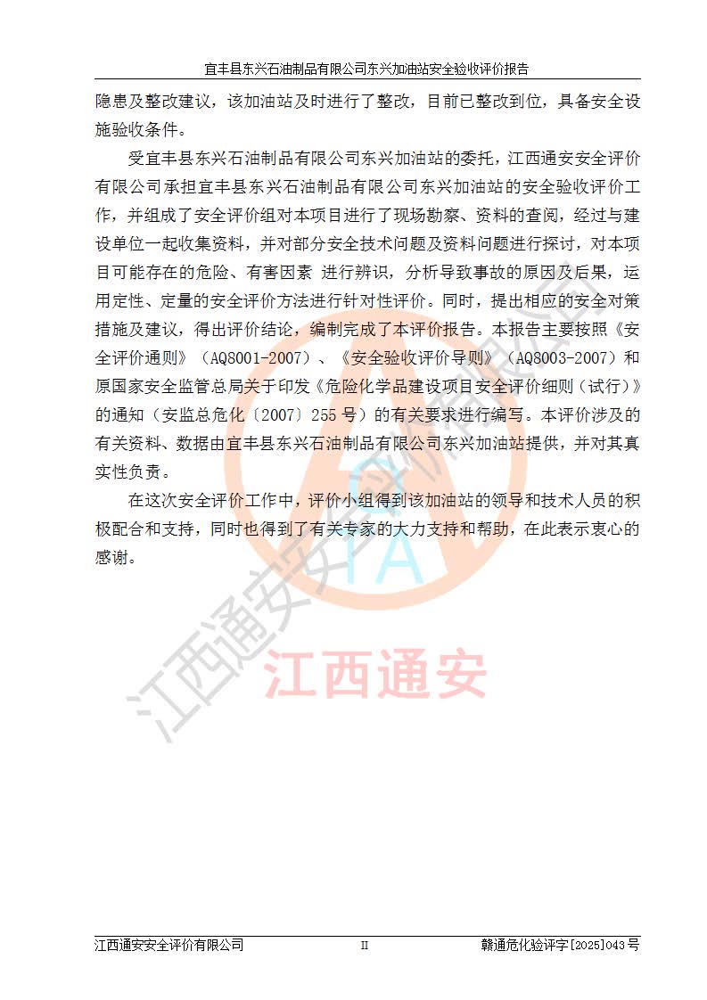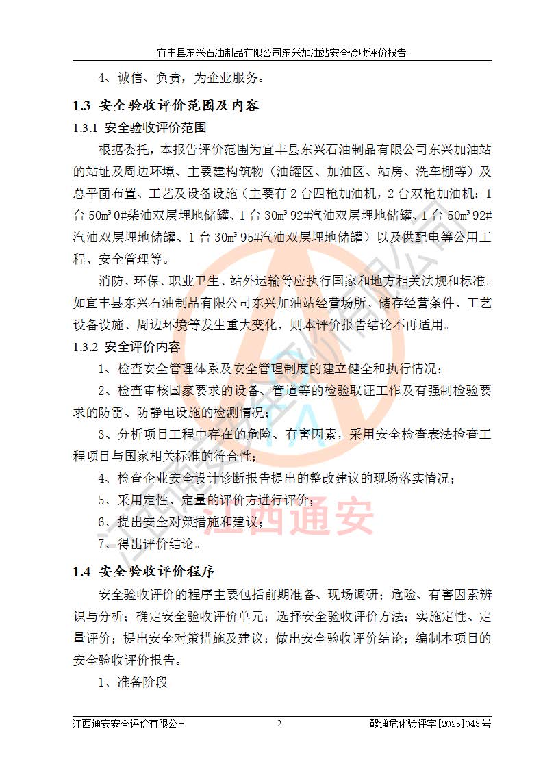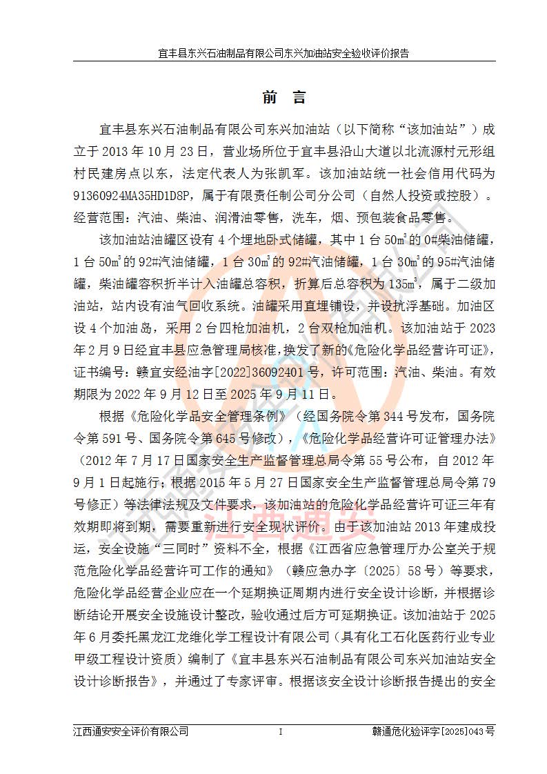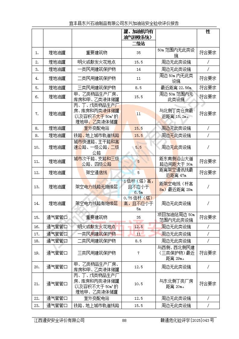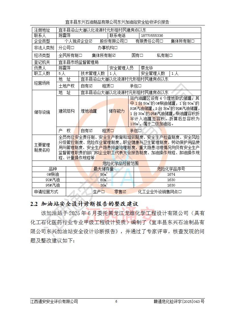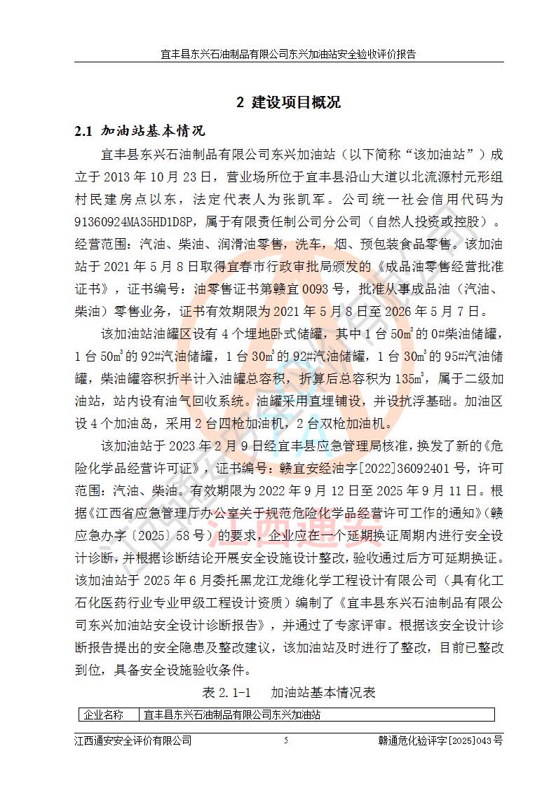 項(xiàng)目名稱 | 宜豐縣東興石油制品有限公司東興加油站安全驗(yàn)收評價(jià) | ||||