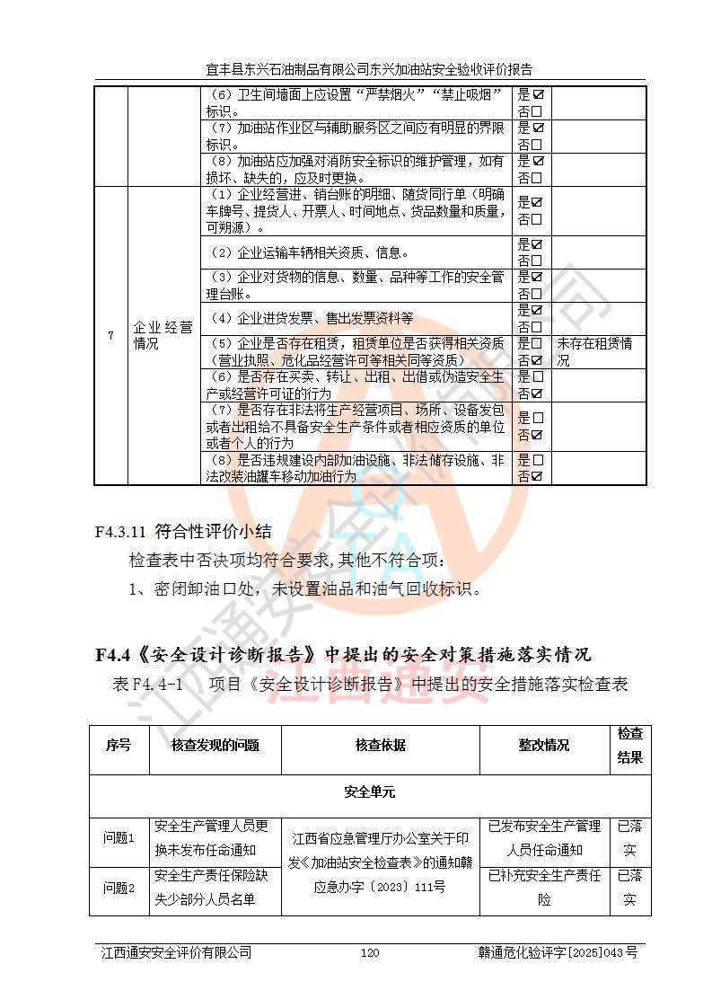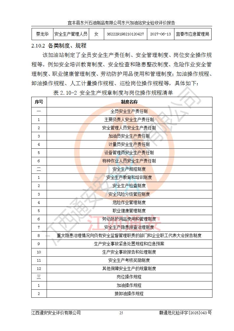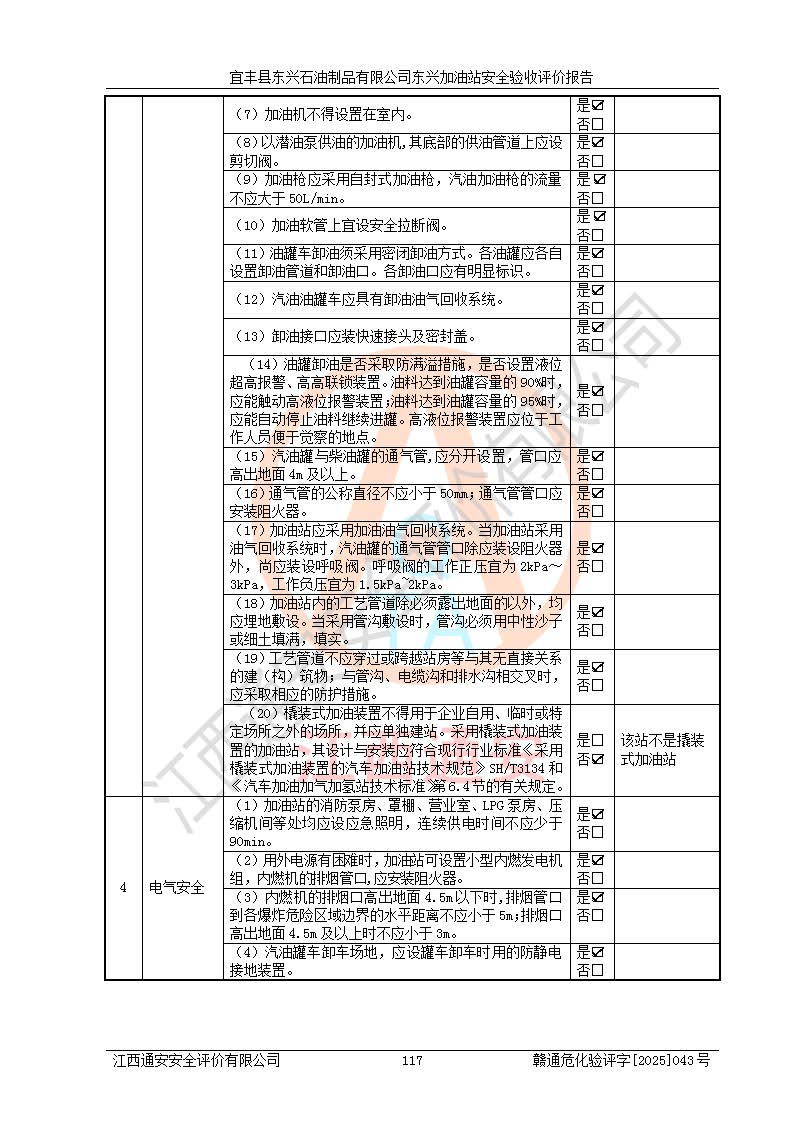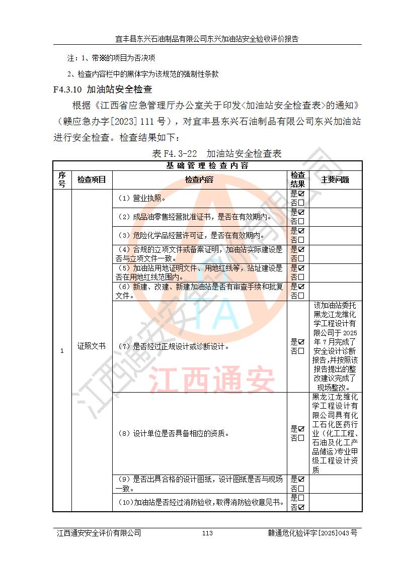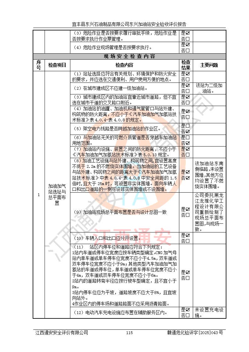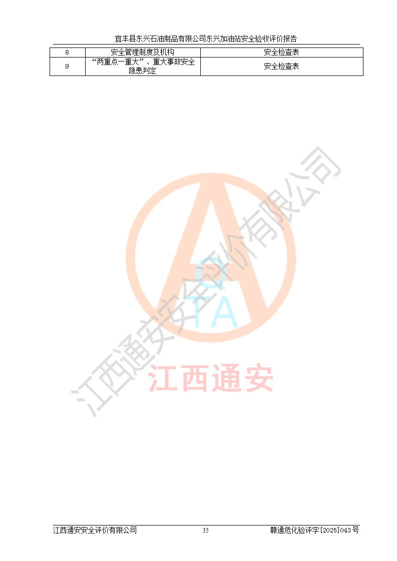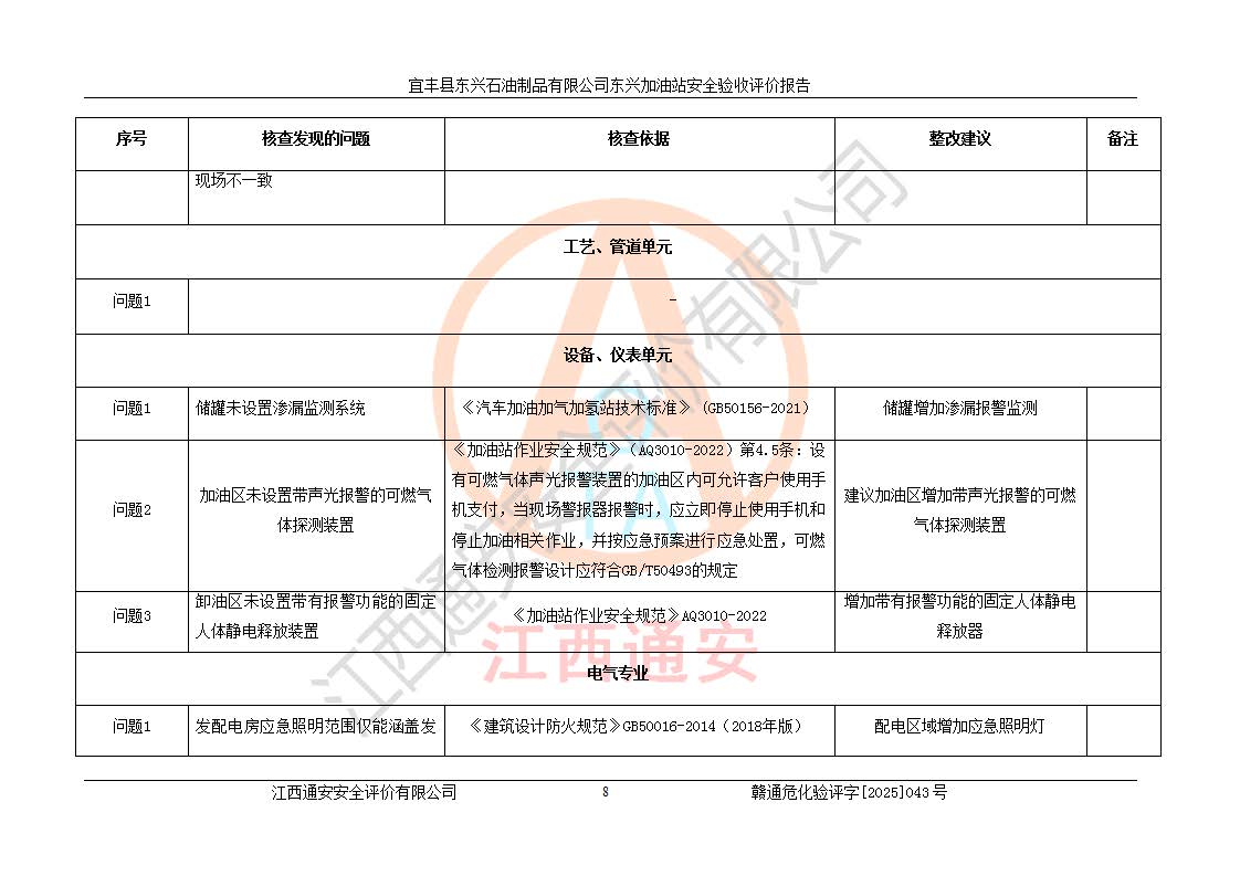 項(xiàng)目名稱 | 宜豐縣東興石油制品有限公司東興加油站安全驗(yàn)收評價(jià) | ||||