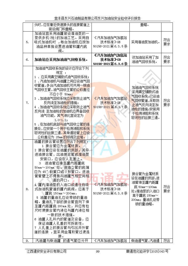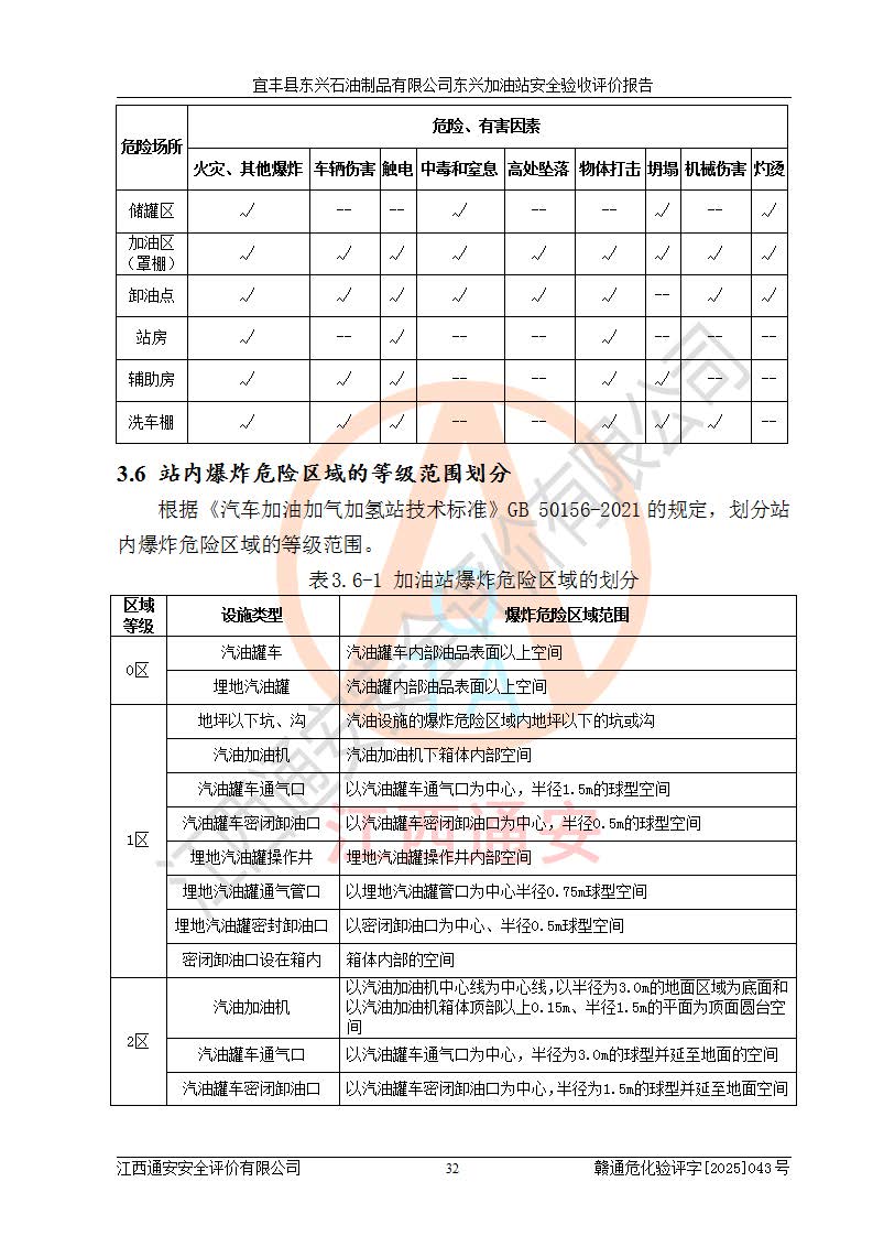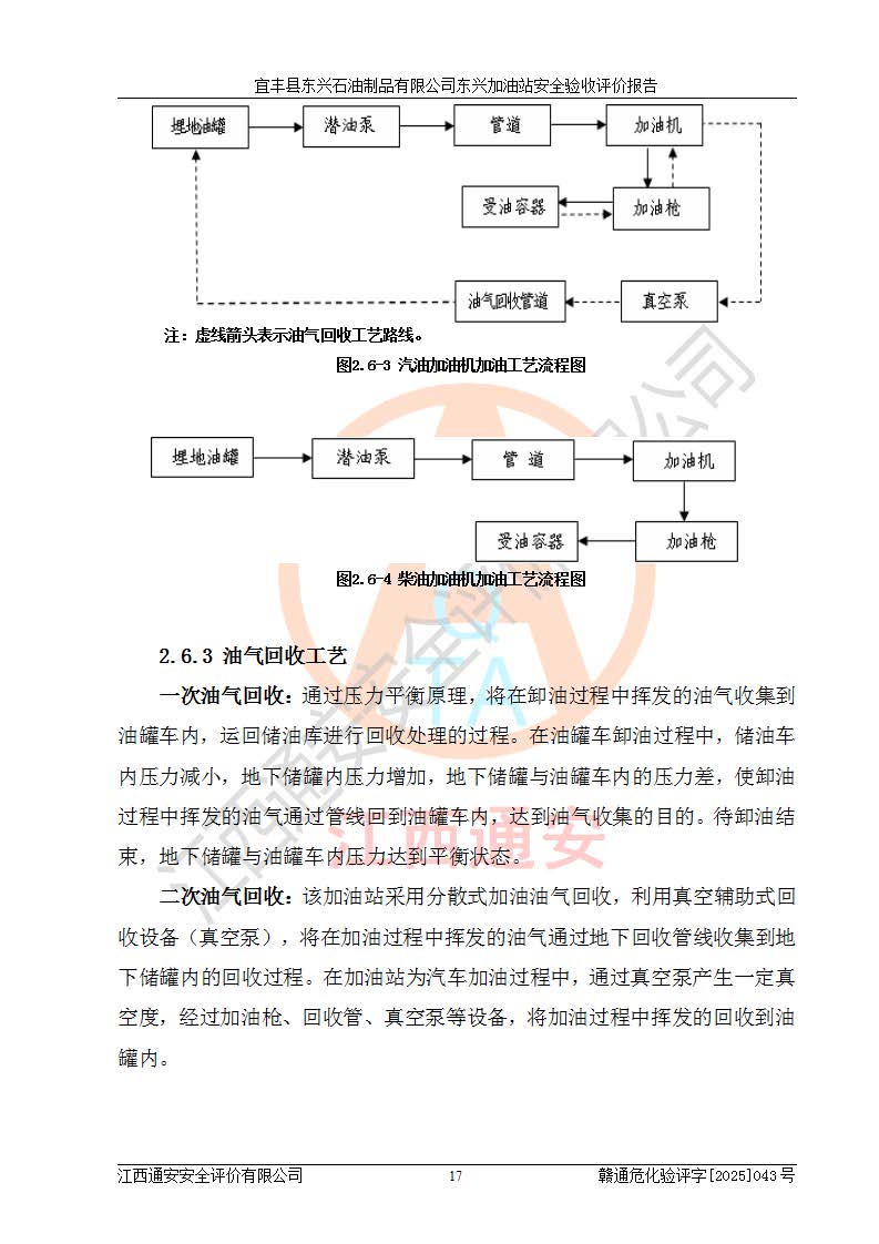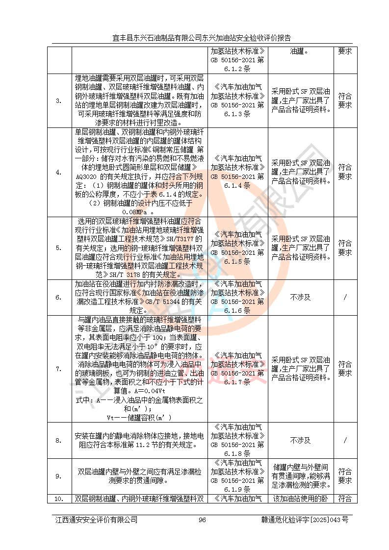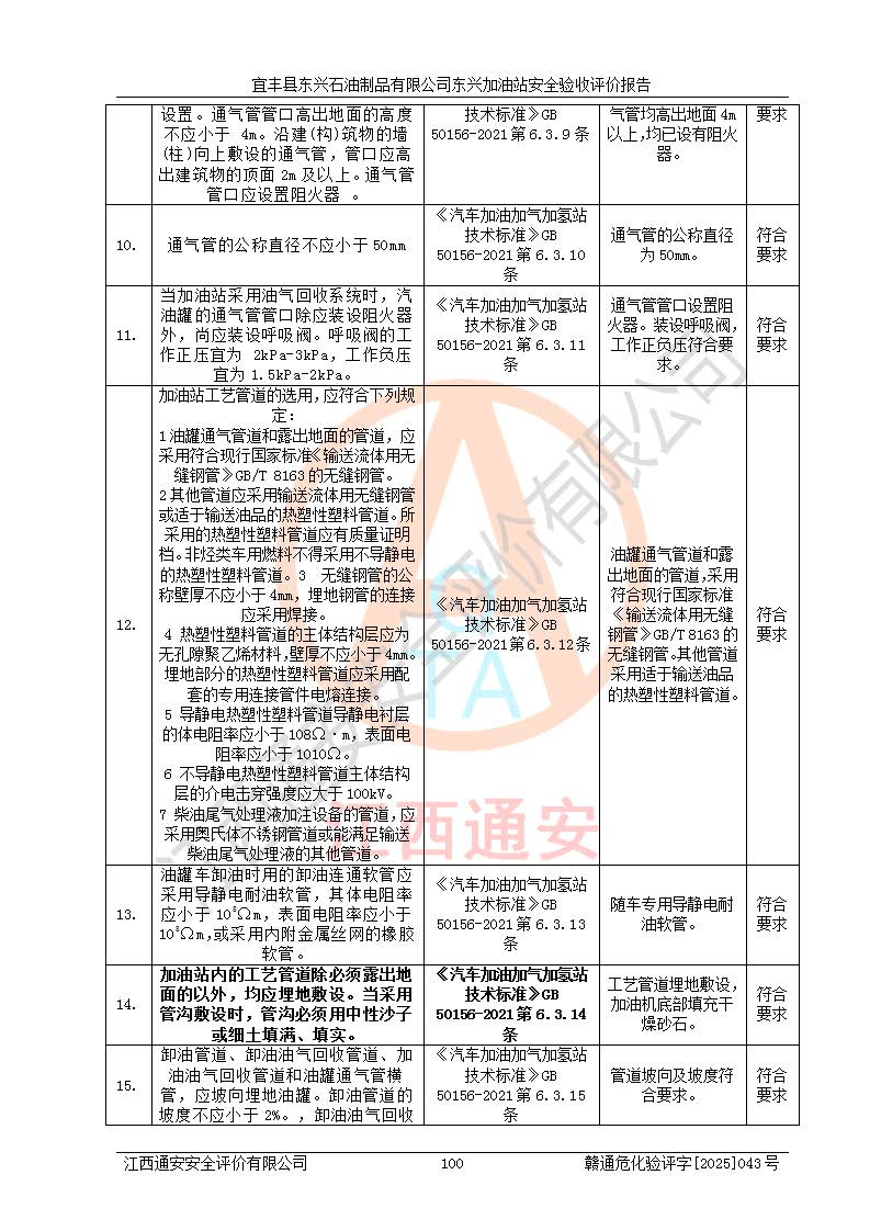項(xiàng)目簡介 | 宜豐縣東興石油制品有限公司東興加油站(以下簡稱“該加油站”)成立于2013年10月23日,營業(yè)場所位于宜豐縣沿山大道以北流源村元形組村民建房點(diǎn)以東,法定**人為張凱軍。該加油站統(tǒng)一社會信用代碼為91360924MA35HD1D8P,屬于有限責(zé)任制公司分公司(自然人投資或控股)。經(jīng)營范圍:汽油、柴油、潤滑油零售,洗車,煙、預(yù)包裝食品零售。 該加油站油罐區(qū)設(shè)有4個(gè)埋地臥式儲罐,其中1臺50m3的0#柴油儲罐,1臺50m3的92#汽油儲罐,1臺30m3的92#汽油儲罐,1臺30m3的95#汽油儲罐,柴油罐容積折半計(jì)入油罐總?cè)莘e,折算后總?cè)莘e為135m3,屬于二級加油站,站內(nèi)設(shè)有油氣回收系統(tǒng)。油罐采用直埋鋪設(shè),并設(shè)抗浮基礎(chǔ)。加油區(qū)設(shè)4個(gè)加油島,采用2臺四槍加油機(jī),2臺雙槍加油機(jī)。該加油站于2023年2月9日經(jīng)宜豐縣應(yīng)急管理局核準(zhǔn),換發(fā)了新的《危險(xiǎn)化學(xué)品經(jīng)營許可證》,證書編號:贛宜安經(jīng)油字[2022]36092401號,許可范圍:汽油、柴油。**期限為2022年9月12日至2025年9月11日。 根據(jù)《危險(xiǎn)化學(xué)品安全管理?xiàng)l例》(經(jīng)***令第344號發(fā)布,***令第591號、***令第645號修改),《危險(xiǎn)化學(xué)品經(jīng)營許可證管理辦法》(2012年7月17日**安全生產(chǎn)監(jiān)督管理總局令第55號公布,自2012年9月1日起施行;根據(jù)2015年5月27日**安全生產(chǎn)監(jiān)督管理總局令第79號修正)等法律法規(guī)及文件要求,該加油站的危險(xiǎn)化學(xué)品經(jīng)營許可證三年**期即將到期,需要重新進(jìn)行安全現(xiàn)狀評價(jià)。由于該加油站2013年建成投運(yùn),安全設(shè)施“三同時(shí)”資料不全,根據(jù)《江西省應(yīng)急管理廳辦公室關(guān)于規(guī)范危險(xiǎn)化學(xué)品經(jīng)營許可工作的通知》(贛應(yīng)急辦字〔2025〕58號)等要求,危險(xiǎn)化學(xué)品經(jīng)營企業(yè)應(yīng)在一個(gè)延期換證周期內(nèi)進(jìn)行安全設(shè)計(jì)診斷,并根據(jù)診斷結(jié)論開展安全設(shè)施設(shè)計(jì)整改,驗(yàn)收通過后方可延期換證。該加油站于2025年6月委托黑龍江龍維化學(xué)工程設(shè)計(jì)有限公司(具有化工石化醫(yī)藥行業(yè)專業(yè)**工程設(shè)計(jì)資質(zhì))編制了《宜豐縣東興石油制品有限公司東興加油站安全設(shè)計(jì)診斷報(bào)告》,并通過了專家評審。根據(jù)該安全設(shè)計(jì)診斷報(bào)告提出的安全隱患及整改建議,該加油站及時(shí)進(jìn)行了整改,目前已整改到位,具備安全設(shè)施驗(yàn)收條件。 | ||||