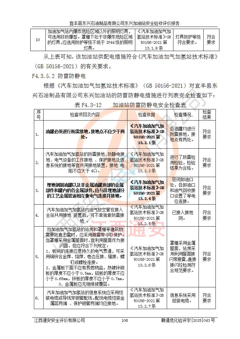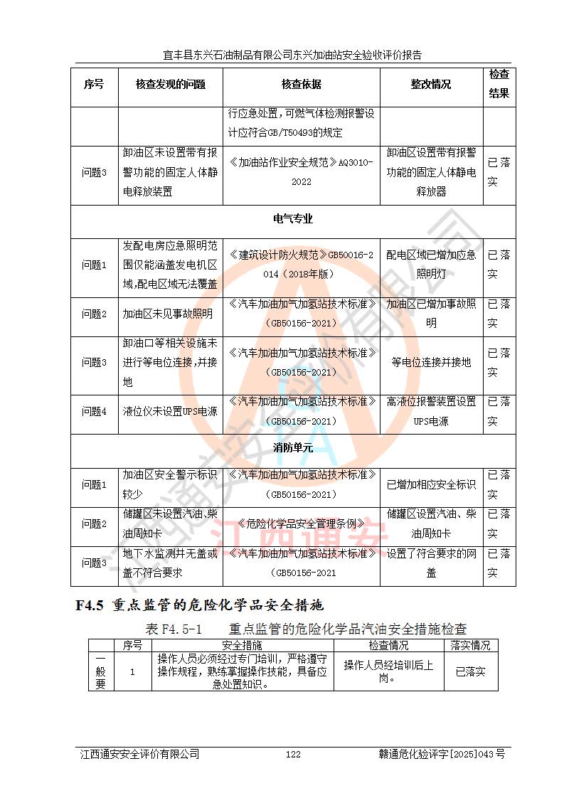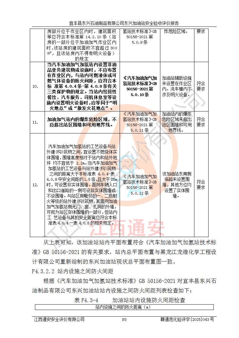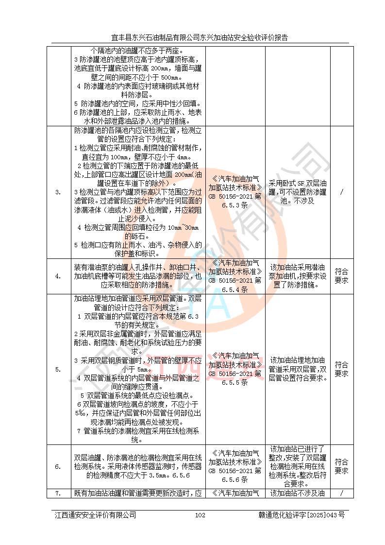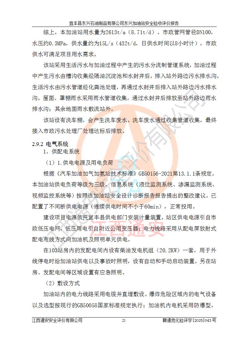 項(xiàng)目簡介 | 宜豐縣東興石油制品有限公司東興加油站(以下簡稱“該加油站”)成立于2013年10月23日,營業(yè)場所位于宜豐縣沿山大道以北流源村元形組村民建房點(diǎn)以東,法定**人為張凱軍。該加油站統(tǒng)一社會信用代碼為91360924MA35HD1D8P,屬于有限責(zé)任制公司分公司(自然人投資或控股)。經(jīng)營范圍:汽油、柴油、潤滑油零售,洗車,煙、預(yù)包裝食品零售。 該加油站油罐區(qū)設(shè)有4個(gè)埋地臥式儲罐,其中1臺50m3的0#柴油儲罐,1臺50m3的92#汽油儲罐,1臺30m3的92#汽油儲罐,1臺30m3的95#汽油儲罐,柴油罐容積折半計(jì)入油罐總?cè)莘e,折算后總?cè)莘e為135m3,屬于二級加油站,站內(nèi)設(shè)有油氣回收系統(tǒng)。油罐采用直埋鋪設(shè),并設(shè)抗浮基礎(chǔ)。加油區(qū)設(shè)4個(gè)加油島,采用2臺四槍加油機(jī),2臺雙槍加油機(jī)。該加油站于2023年2月9日經(jīng)宜豐縣應(yīng)急管理局核準(zhǔn),換發(fā)了新的《危險(xiǎn)化學(xué)品經(jīng)營許可證》,證書編號:贛宜安經(jīng)油字[2022]36092401號,許可范圍:汽油、柴油。**期限為2022年9月12日至2025年9月11日。 根據(jù)《危險(xiǎn)化學(xué)品安全管理?xiàng)l例》(經(jīng)***令第344號發(fā)布,***令第591號、***令第645號修改),《危險(xiǎn)化學(xué)品經(jīng)營許可證管理辦法》(2012年7月17日**安全生產(chǎn)監(jiān)督管理總局令第55號公布,自2012年9月1日起施行;根據(jù)2015年5月27日**安全生產(chǎn)監(jiān)督管理總局令第79號修正)等法律法規(guī)及文件要求,該加油站的危險(xiǎn)化學(xué)品經(jīng)營許可證三年**期即將到期,需要重新進(jìn)行安全現(xiàn)狀評價(jià)。由于該加油站2013年建成投運(yùn),安全設(shè)施“三同時(shí)”資料不全,根據(jù)《江西省應(yīng)急管理廳辦公室關(guān)于規(guī)范危險(xiǎn)化學(xué)品經(jīng)營許可工作的通知》(贛應(yīng)急辦字〔2025〕58號)等要求,危險(xiǎn)化學(xué)品經(jīng)營企業(yè)應(yīng)在一個(gè)延期換證周期內(nèi)進(jìn)行安全設(shè)計(jì)診斷,并根據(jù)診斷結(jié)論開展安全設(shè)施設(shè)計(jì)整改,驗(yàn)收通過后方可延期換證。該加油站于2025年6月委托黑龍江龍維化學(xué)工程設(shè)計(jì)有限公司(具有化工石化醫(yī)藥行業(yè)專業(yè)**工程設(shè)計(jì)資質(zhì))編制了《宜豐縣東興石油制品有限公司東興加油站安全設(shè)計(jì)診斷報(bào)告》,并通過了專家評審。根據(jù)該安全設(shè)計(jì)診斷報(bào)告提出的安全隱患及整改建議,該加油站及時(shí)進(jìn)行了整改,目前已整改到位,具備安全設(shè)施驗(yàn)收條件。 | ||||