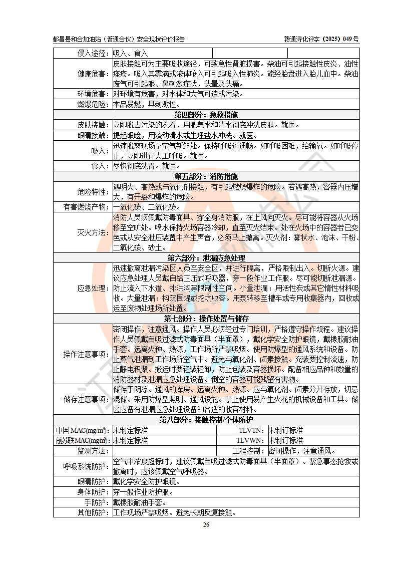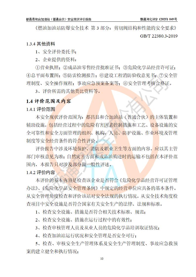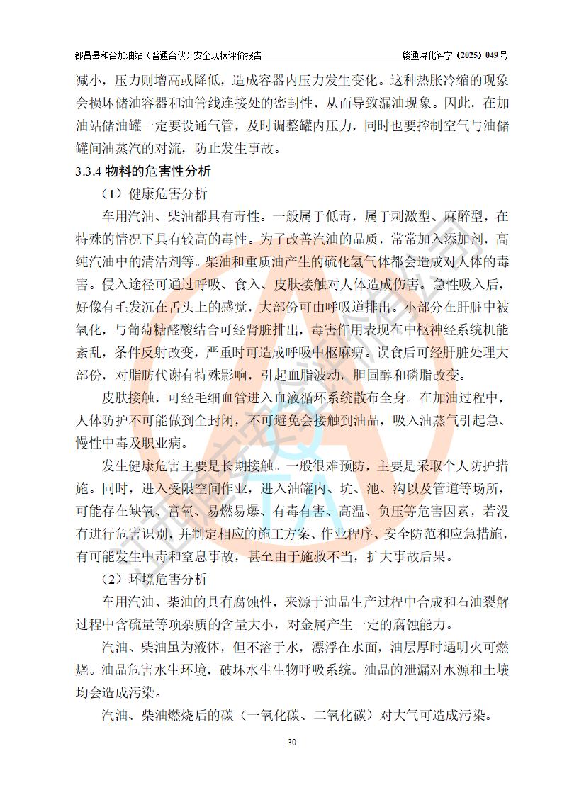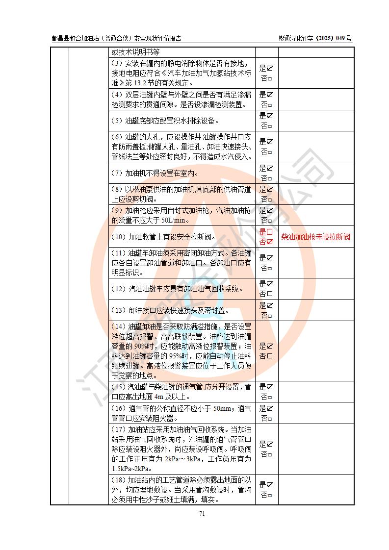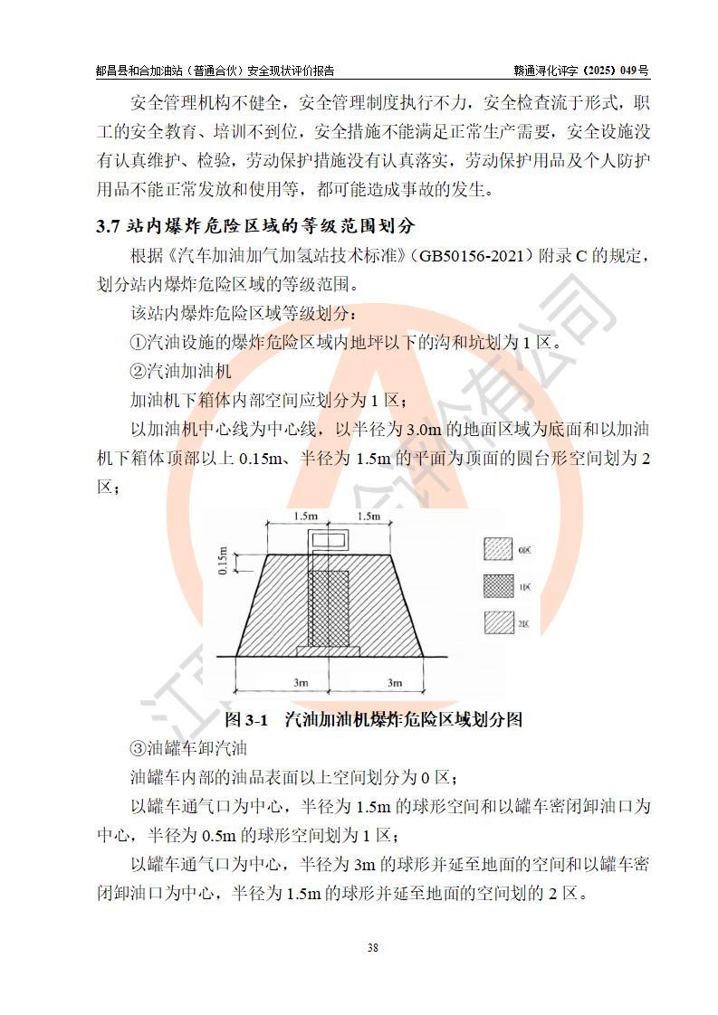 都昌縣和合加油站(普通合伙)是一家專門(mén)從事成品油零售經(jīng)營(yíng)的普通合伙企業(yè),執(zhí)行事務(wù)合伙人:江銘,經(jīng)營(yíng)場(chǎng)所位于江西省九江市都昌縣和合鄉(xiāng)南溪村和合路口。該加油站現(xiàn)有從業(yè)人員6人,其中安全管理人員1人,主要負(fù)責(zé)人江麗娟。 該加油站站區(qū)占地面積1350m2,站區(qū)內(nèi)設(shè)置有4臺(tái)雙槍程控燃油加油機(jī)及配套的工藝管線、30m3雙層0#柴油儲(chǔ)罐1臺(tái)、30m3雙層92#汽油儲(chǔ)罐2臺(tái)、30m3雙層95#汽油儲(chǔ)罐1臺(tái),油品儲(chǔ)罐總?cè)莘e為120m3(折算成汽油為105m3)。按現(xiàn)行《汽車加油加氣加氫站技術(shù)標(biāo)準(zhǔn)》對(duì)加油站的等級(jí)劃分原則,該站屬于二級(jí)加油站。 該站由九江市行政審批局換發(fā)《危險(xiǎn)化學(xué)品經(jīng)營(yíng)許可證》(證號(hào):贛九行審經(jīng)(甲)字[2022]000134號(hào)),**期限2022年08月15日至2025年08月14日。 |