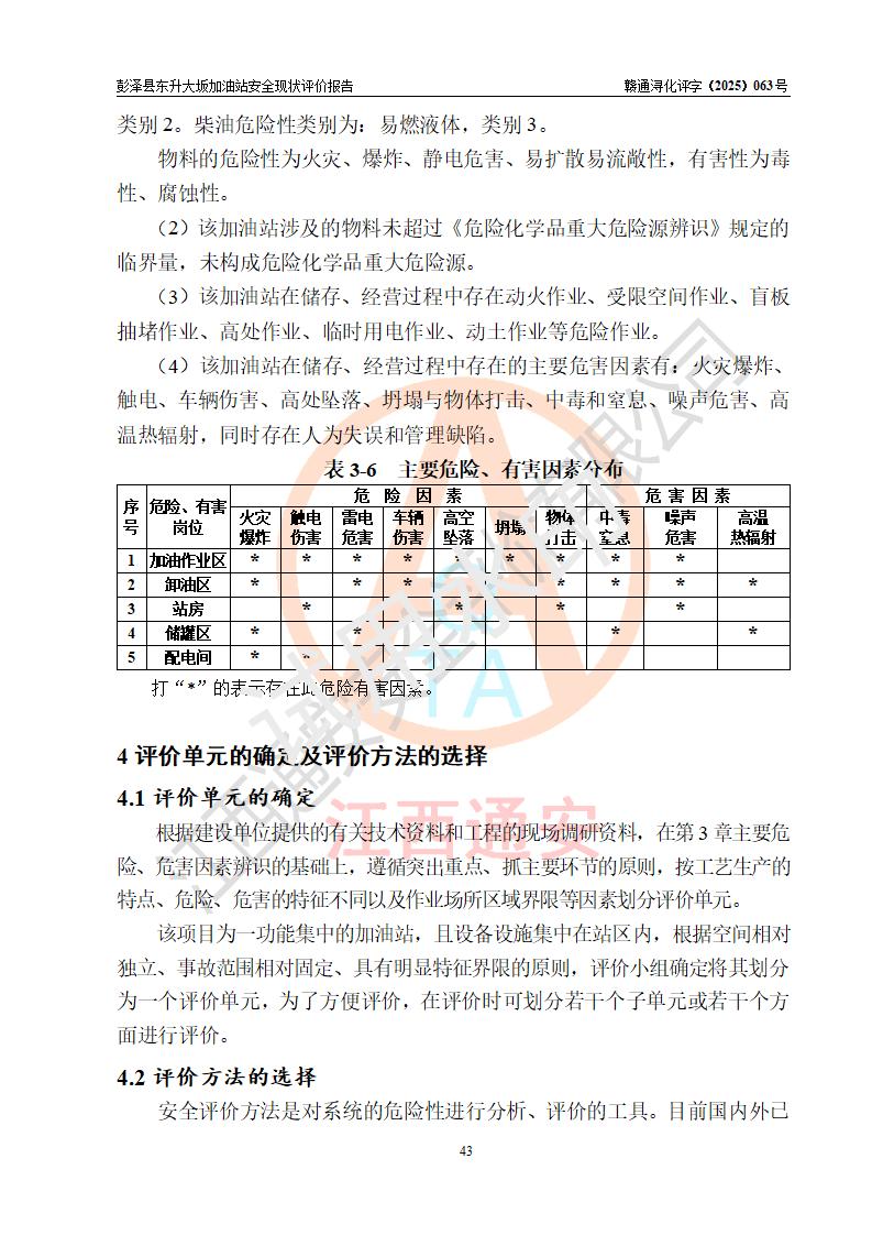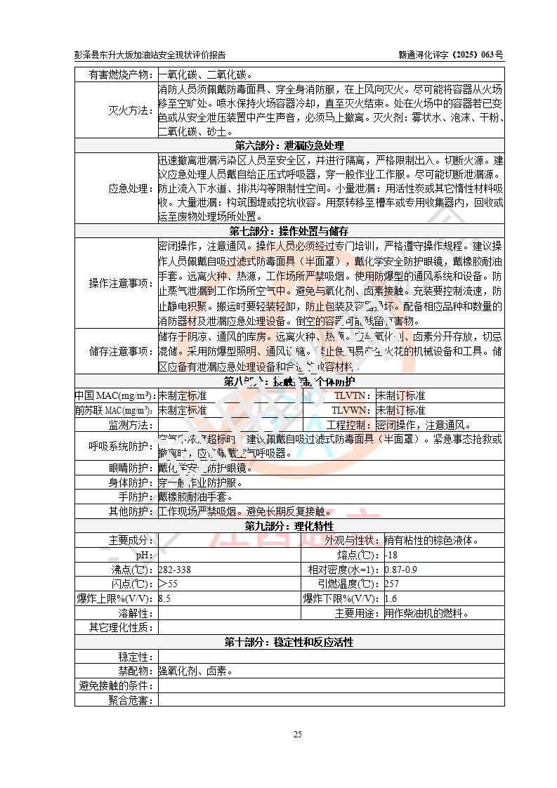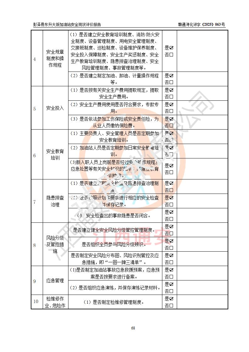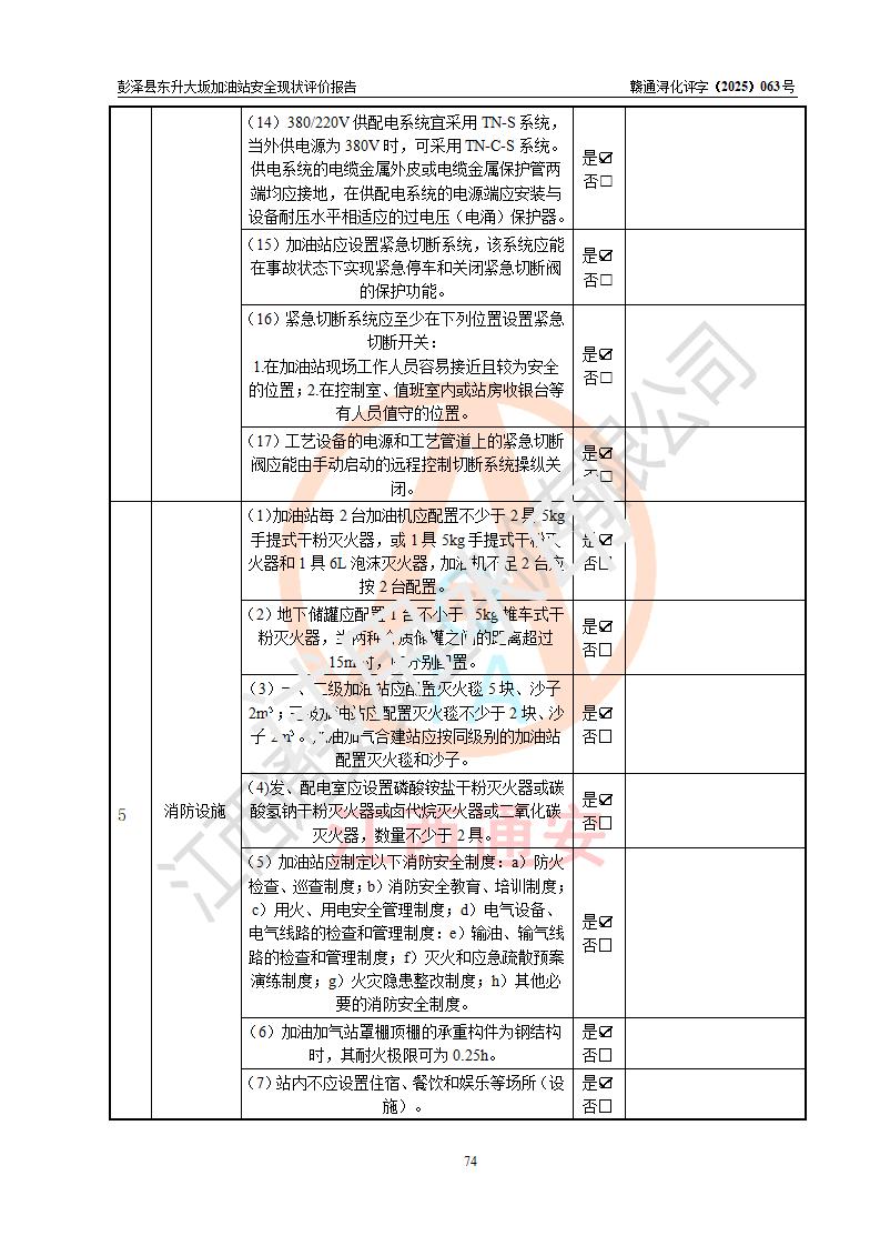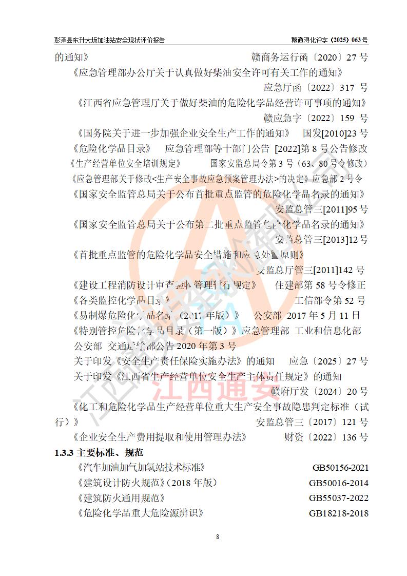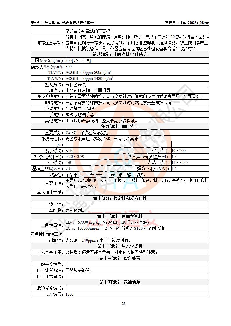 評(píng)價(jià)結(jié)論 | 彭澤縣東升大坂加油站涉及的安全條件、安全經(jīng)營(yíng)條件、安全生產(chǎn)管理符合《危險(xiǎn)化學(xué)品經(jīng)營(yíng)許可證管理辦法》、《汽車(chē)加油加氣加氫站技術(shù)標(biāo)準(zhǔn)》等**有關(guān)法規(guī)、標(biāo)準(zhǔn)、規(guī)范要求,能滿(mǎn)足危險(xiǎn)化學(xué)品經(jīng)營(yíng)安全條件。 | |||