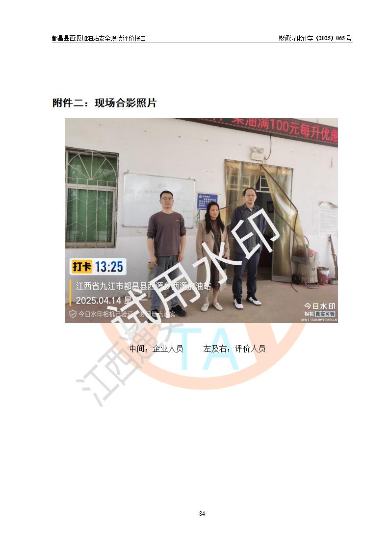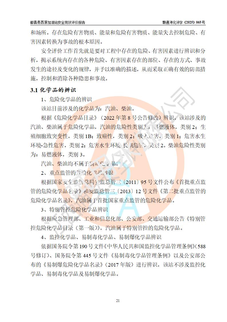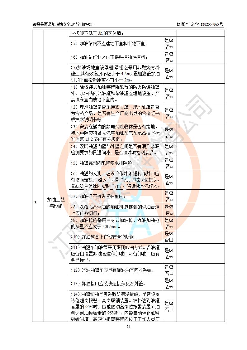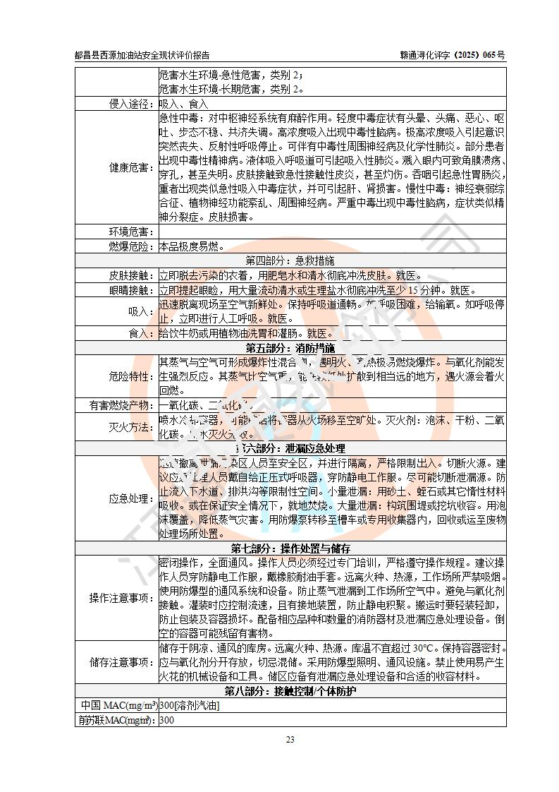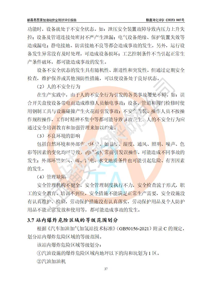 評(píng)價(jià)結(jié)論 | 都昌縣西源加油站涉及的安全條件、安全經(jīng)營(yíng)條件、安全生產(chǎn)管理符合《危險(xiǎn)化學(xué)品經(jīng)營(yíng)許可證管理辦法》、《汽車加油加氣加氫站技術(shù)標(biāo)準(zhǔn)》等**有關(guān)法規(guī)、標(biāo)準(zhǔn)、規(guī)范要求,能滿足危險(xiǎn)化學(xué)品經(jīng)營(yíng)安全條件。 | |||