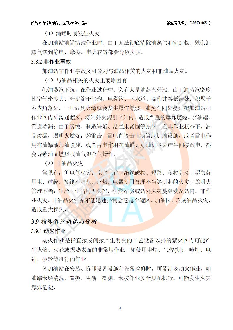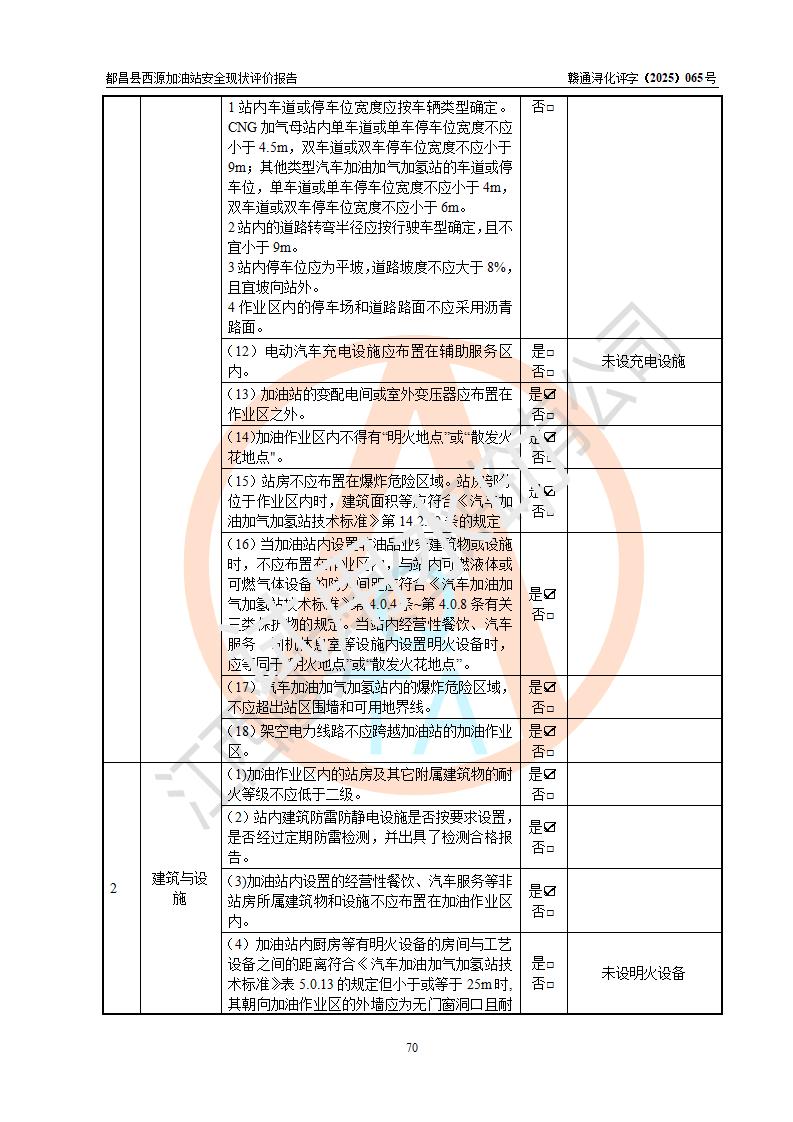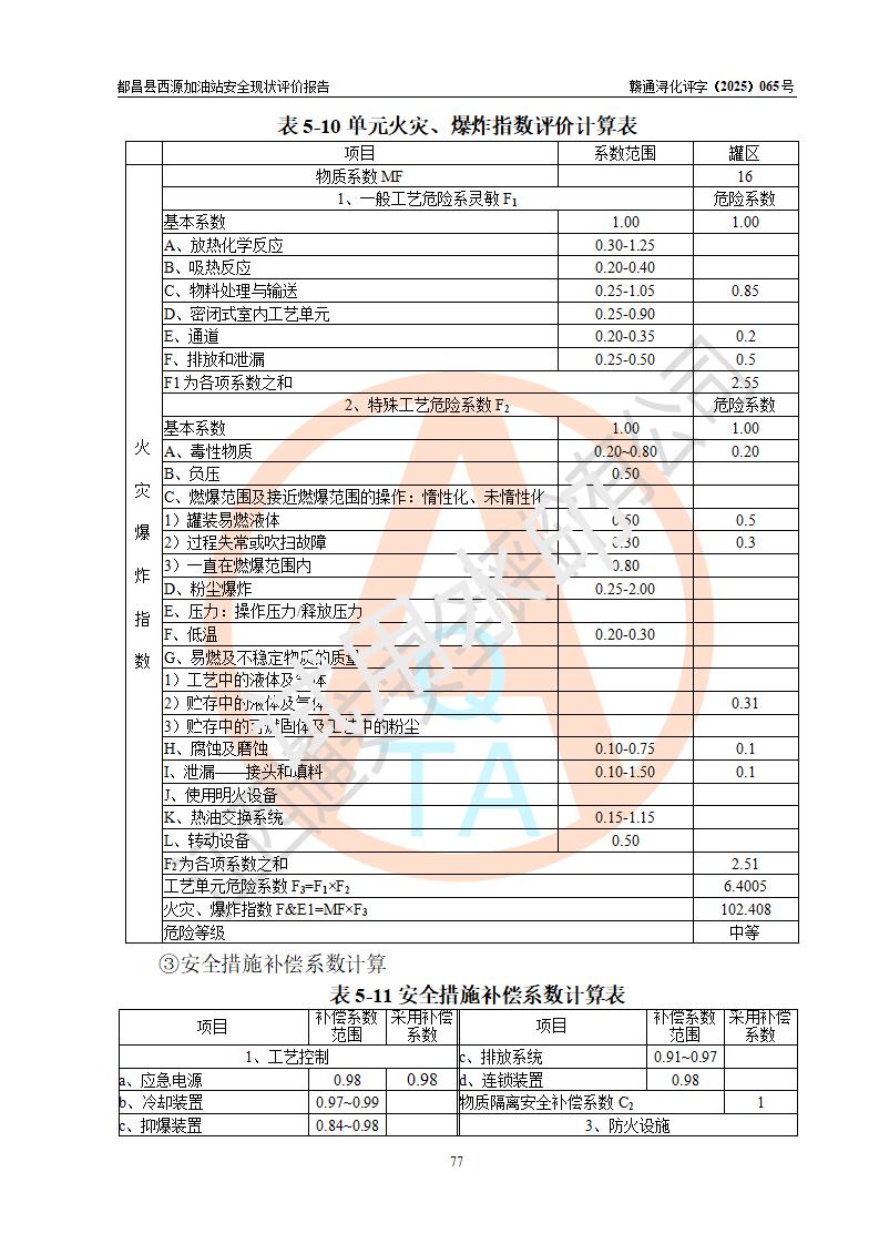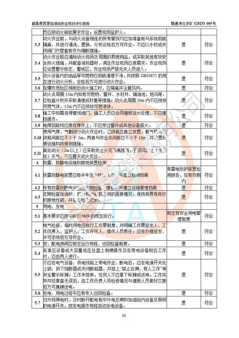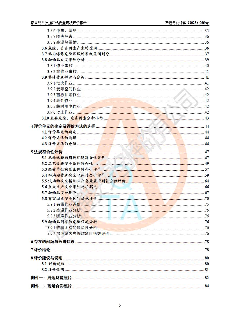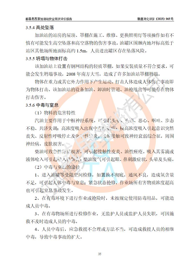 評(píng)價(jià)結(jié)論 | 都昌縣西源加油站涉及的安全條件、安全經(jīng)營(yíng)條件、安全生產(chǎn)管理符合《危險(xiǎn)化學(xué)品經(jīng)營(yíng)許可證管理辦法》、《汽車加油加氣加氫站技術(shù)標(biāo)準(zhǔn)》等**有關(guān)法規(guī)、標(biāo)準(zhǔn)、規(guī)范要求,能滿足危險(xiǎn)化學(xué)品經(jīng)營(yíng)安全條件。 | |||