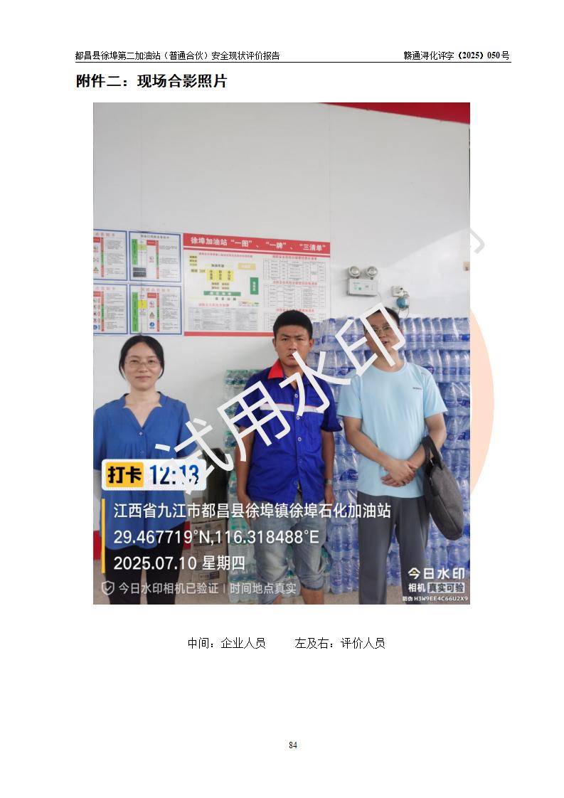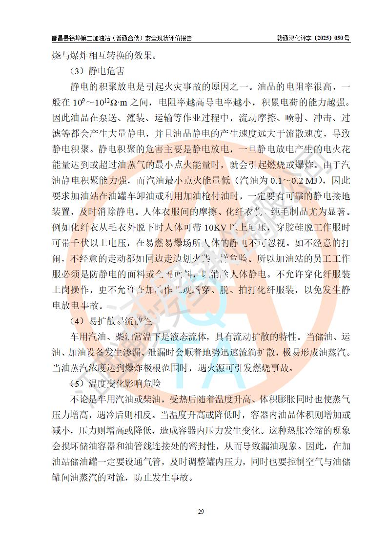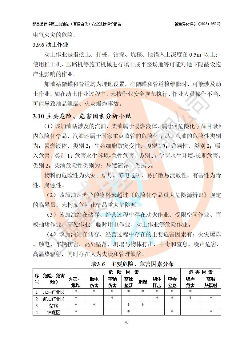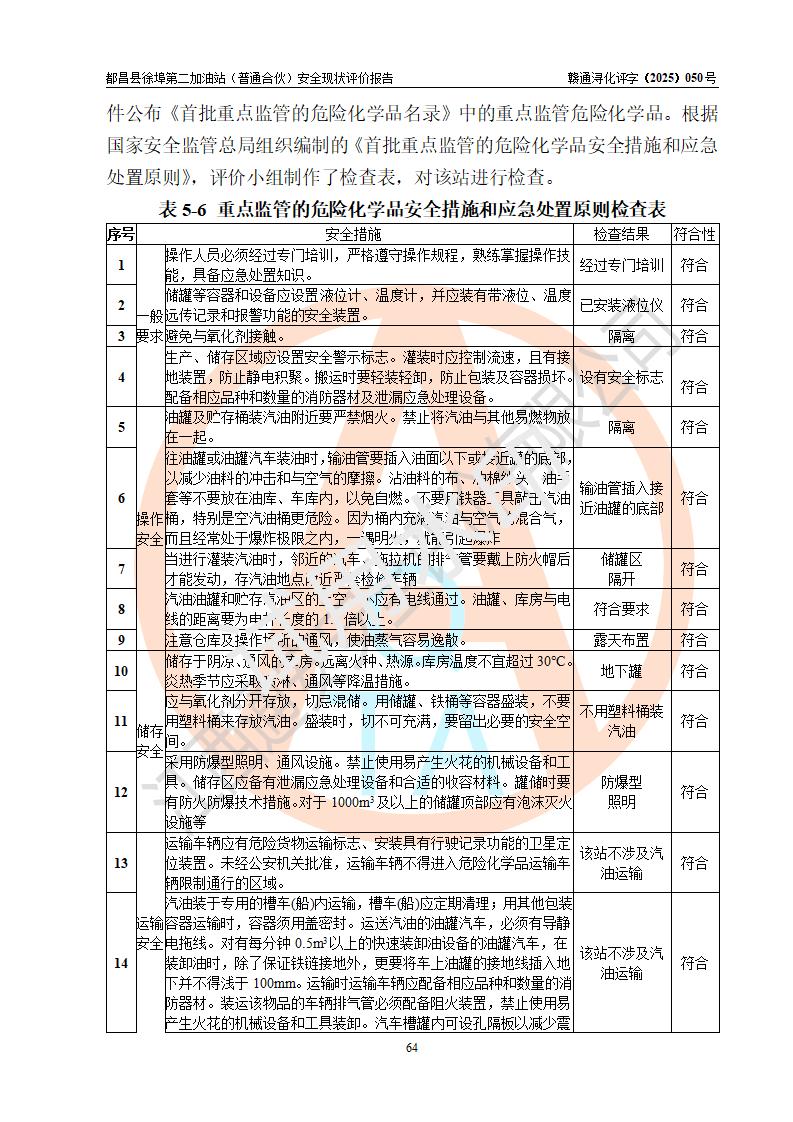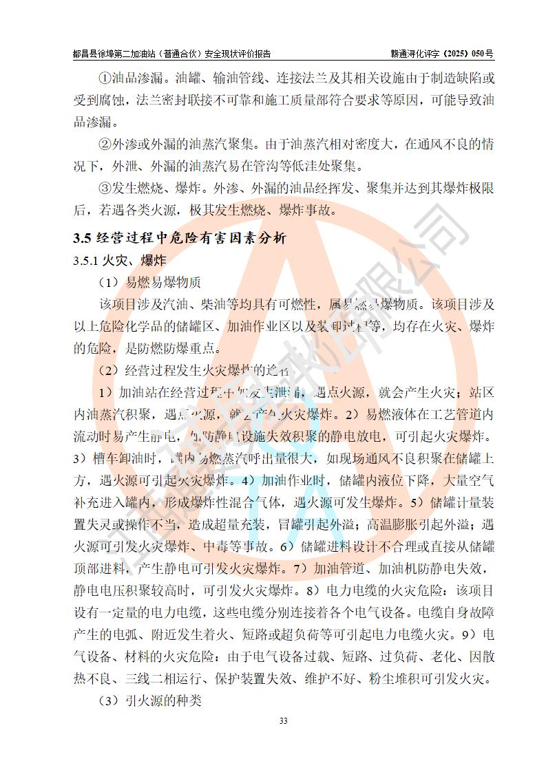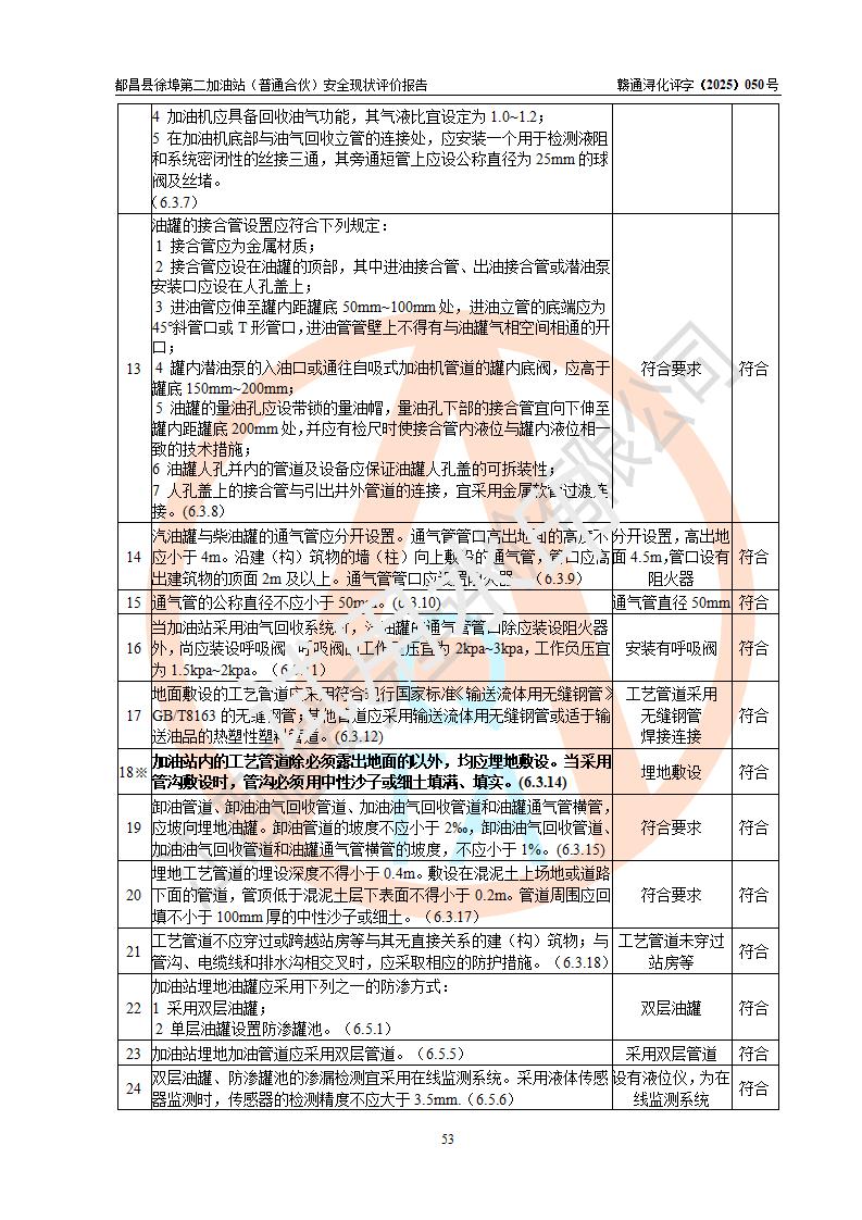 都昌縣徐埠第二加油站(普通合伙)是一家專門從事成品油零售經(jīng)營的普通合伙企業(yè),執(zhí)行事務合伙人:曹建平,經(jīng)營場所位于江西省九江市都昌縣徐埠鎮(zhèn)徐埠村委會上街七組。該加油站現(xiàn)有從業(yè)人員6人,其中安全管理人員1人,主要負責人方錦英。 該加油站站區(qū)占地面積2100m2,站區(qū)內(nèi)設(shè)置有3臺雙槍程控燃油加油機、1臺單槍程控燃油加油機及配套的工藝管線、30m3雙層0#柴油儲罐1臺、30m3雙層92#汽油儲罐2臺、30m3雙層95#汽油儲罐1臺,油品儲罐總?cè)莘e為120m3(折算成汽油為105m3)。按現(xiàn)行《汽車加油加氣加氫站技術(shù)標準》對加油站的等級劃分原則,該站屬于二級加油站。 該站由九江市行政審批局換發(fā)《危險化學品經(jīng)營許可證》(證號:贛九行審經(jīng)(甲)字[2022]000171號),**期限2022年10月18日至2025年10月17日。 |