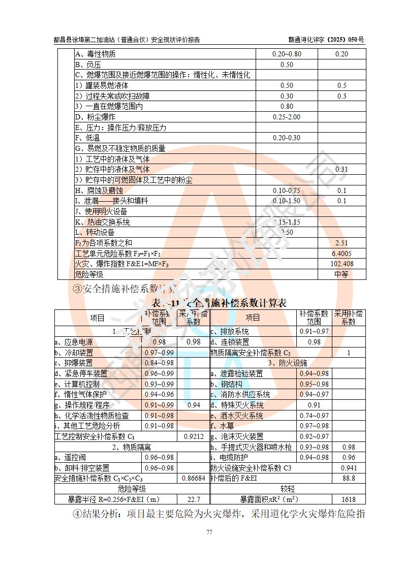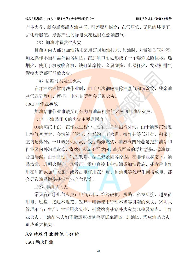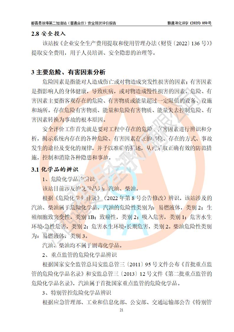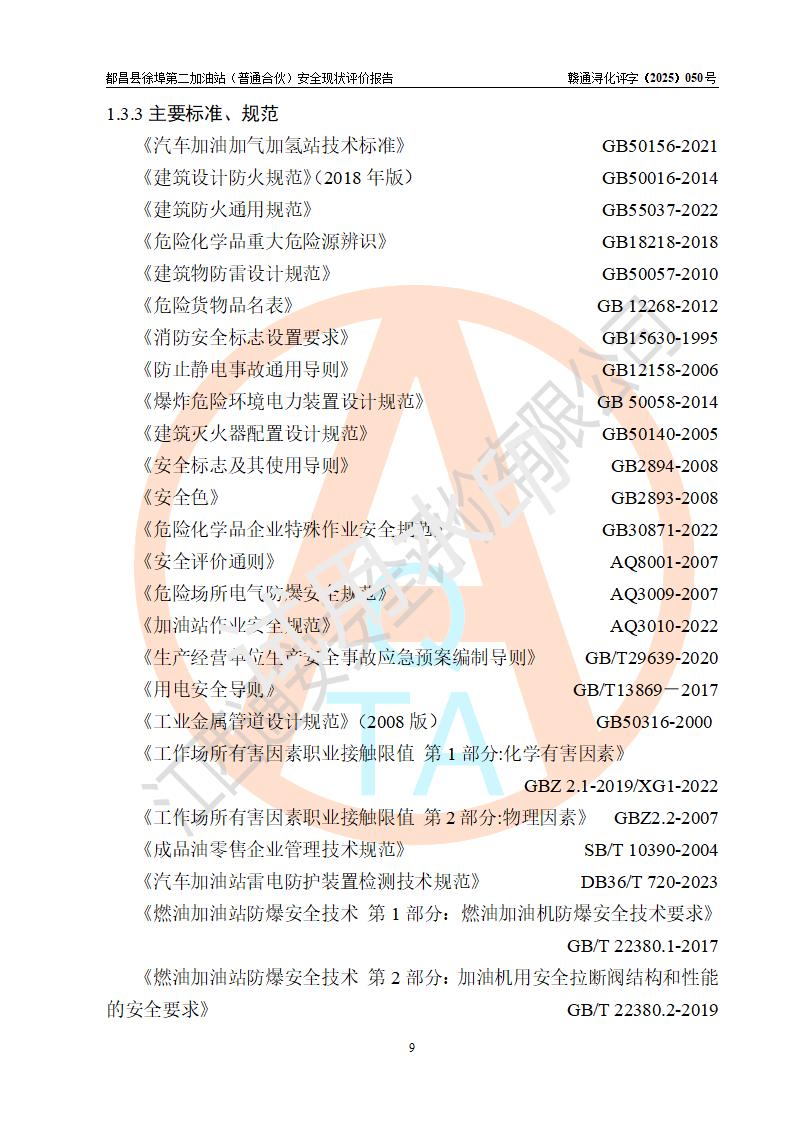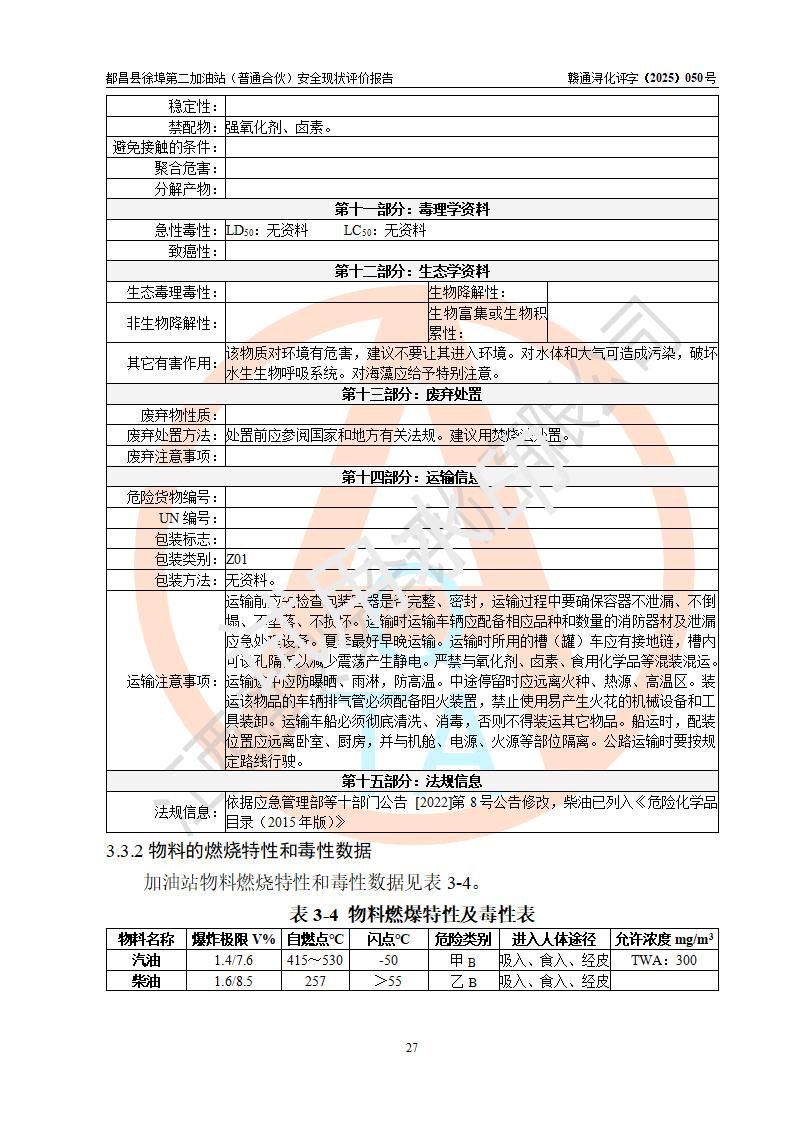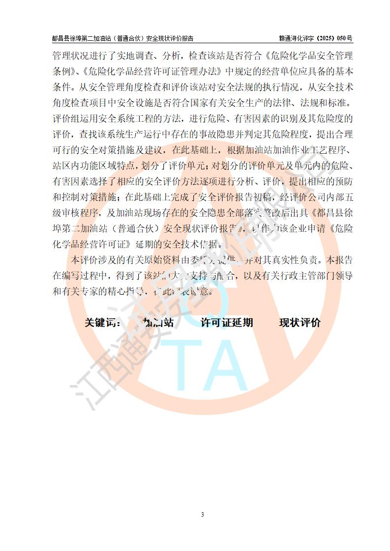 都昌縣徐埠第二加油站(普通合伙)是一家專門從事成品油零售經(jīng)營的普通合伙企業(yè),執(zhí)行事務合伙人:曹建平,經(jīng)營場所位于江西省九江市都昌縣徐埠鎮(zhèn)徐埠村委會上街七組。該加油站現(xiàn)有從業(yè)人員6人,其中安全管理人員1人,主要負責人方錦英。 該加油站站區(qū)占地面積2100m2,站區(qū)內(nèi)設(shè)置有3臺雙槍程控燃油加油機、1臺單槍程控燃油加油機及配套的工藝管線、30m3雙層0#柴油儲罐1臺、30m3雙層92#汽油儲罐2臺、30m3雙層95#汽油儲罐1臺,油品儲罐總?cè)莘e為120m3(折算成汽油為105m3)。按現(xiàn)行《汽車加油加氣加氫站技術(shù)標準》對加油站的等級劃分原則,該站屬于二級加油站。 該站由九江市行政審批局換發(fā)《危險化學品經(jīng)營許可證》(證號:贛九行審經(jīng)(甲)字[2022]000171號),**期限2022年10月18日至2025年10月17日。 |
