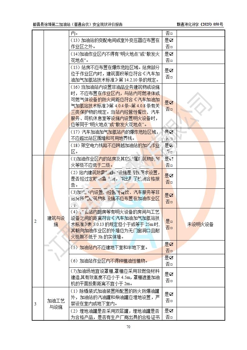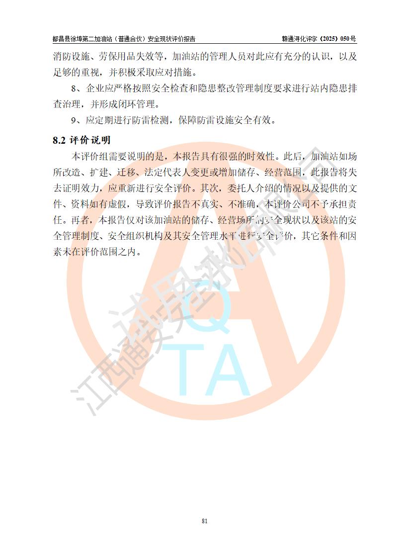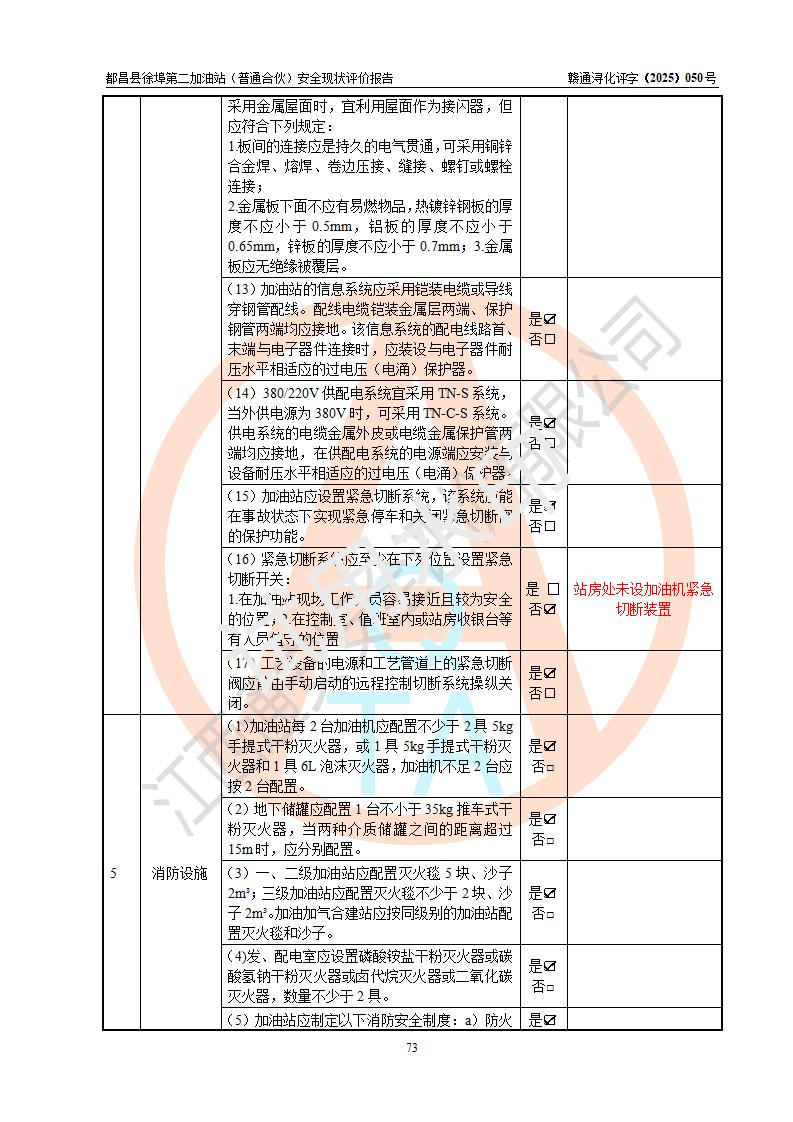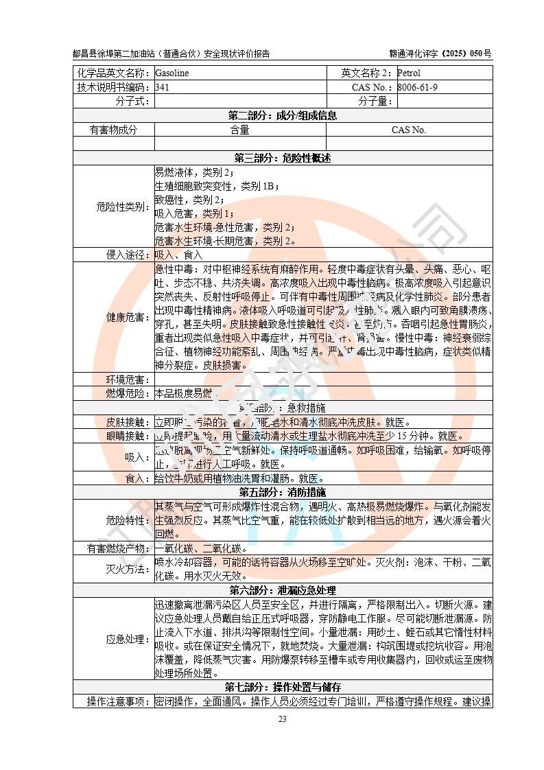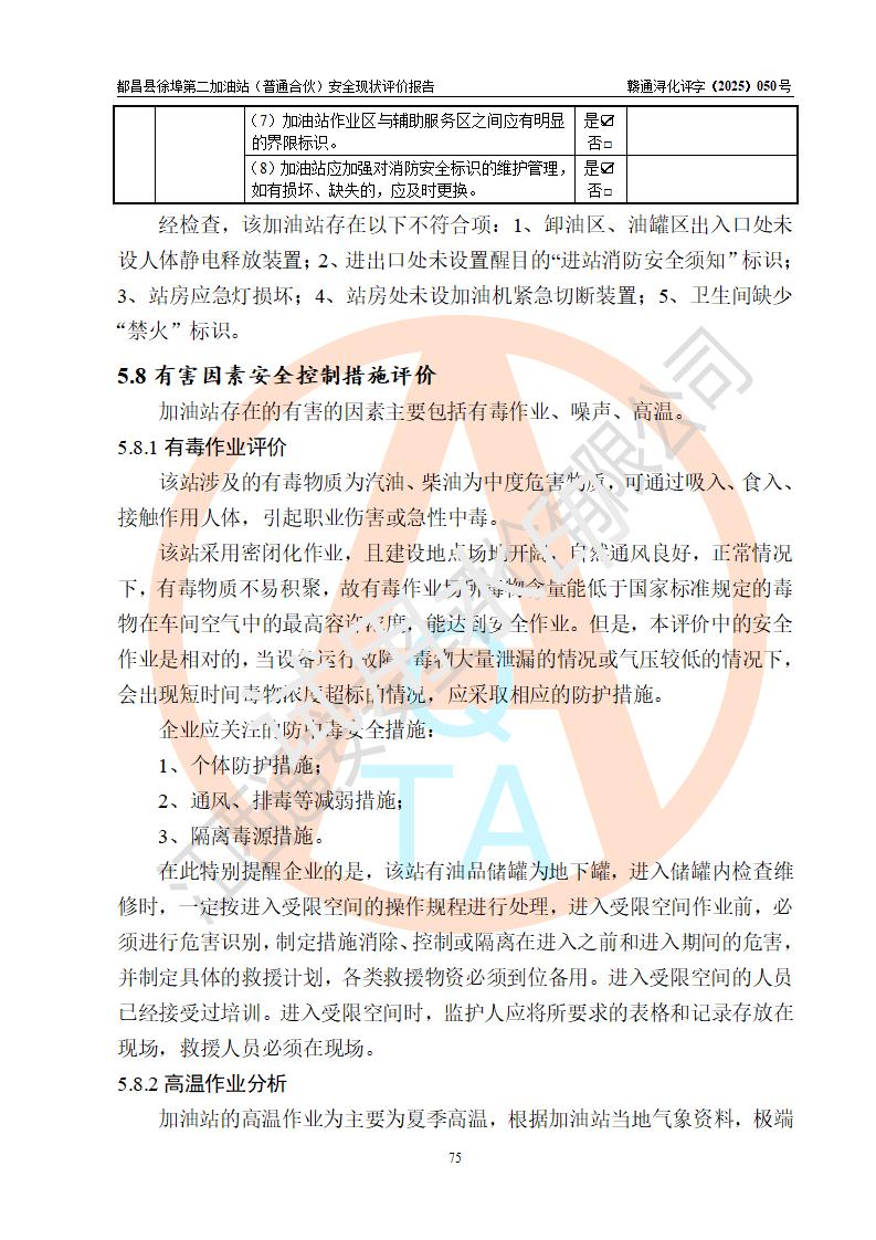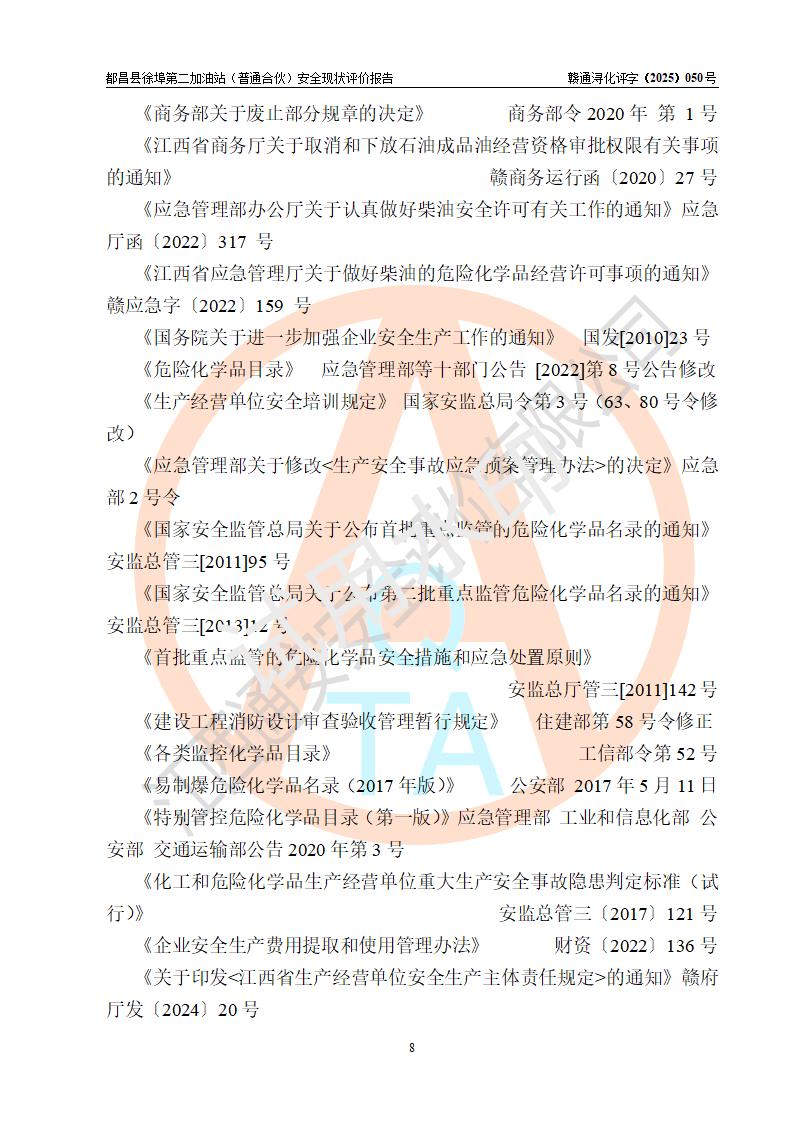 都昌縣徐埠第二加油站(普通合伙)是一家專門從事成品油零售經(jīng)營的普通合伙企業(yè),執(zhí)行事務合伙人:曹建平,經(jīng)營場所位于江西省九江市都昌縣徐埠鎮(zhèn)徐埠村委會上街七組。該加油站現(xiàn)有從業(yè)人員6人,其中安全管理人員1人,主要負責人方錦英。 該加油站站區(qū)占地面積2100m2,站區(qū)內(nèi)設(shè)置有3臺雙槍程控燃油加油機、1臺單槍程控燃油加油機及配套的工藝管線、30m3雙層0#柴油儲罐1臺、30m3雙層92#汽油儲罐2臺、30m3雙層95#汽油儲罐1臺,油品儲罐總?cè)莘e為120m3(折算成汽油為105m3)。按現(xiàn)行《汽車加油加氣加氫站技術(shù)標準》對加油站的等級劃分原則,該站屬于二級加油站。 該站由九江市行政審批局換發(fā)《危險化學品經(jīng)營許可證》(證號:贛九行審經(jīng)(甲)字[2022]000171號),**期限2022年10月18日至2025年10月17日。 |