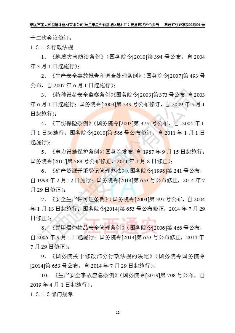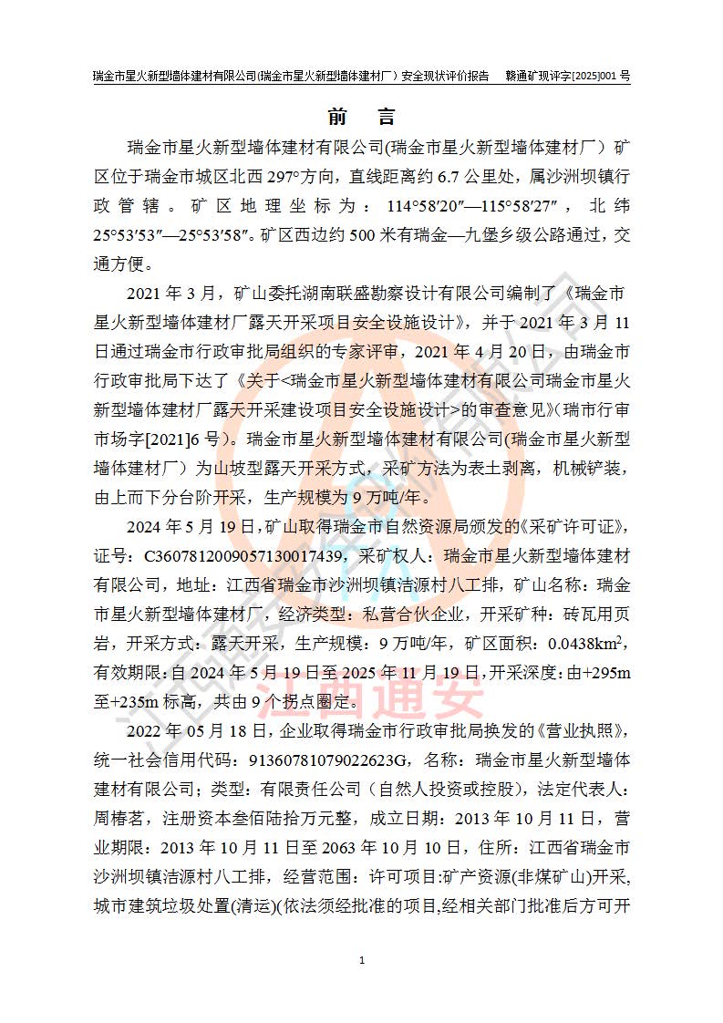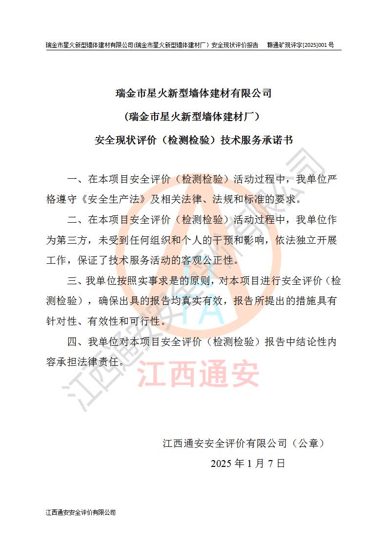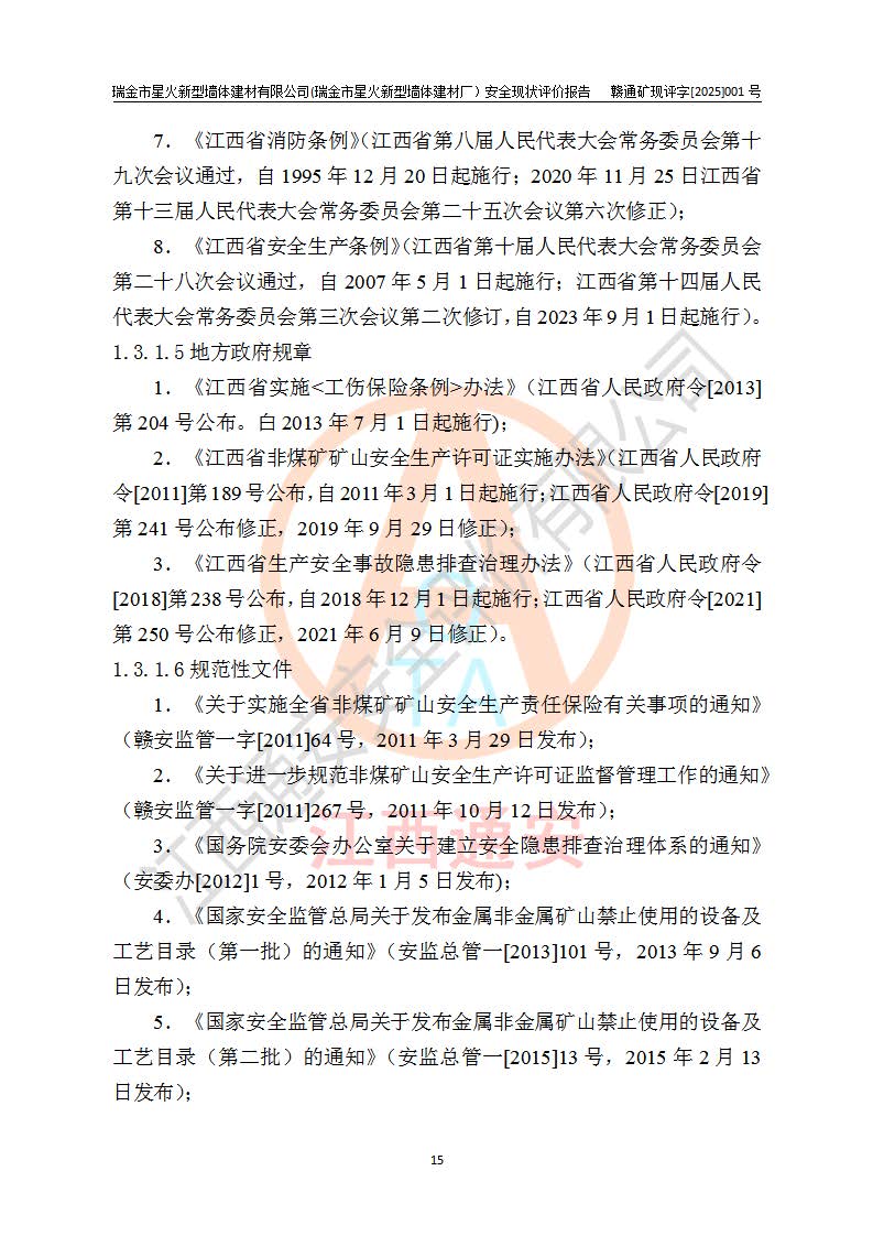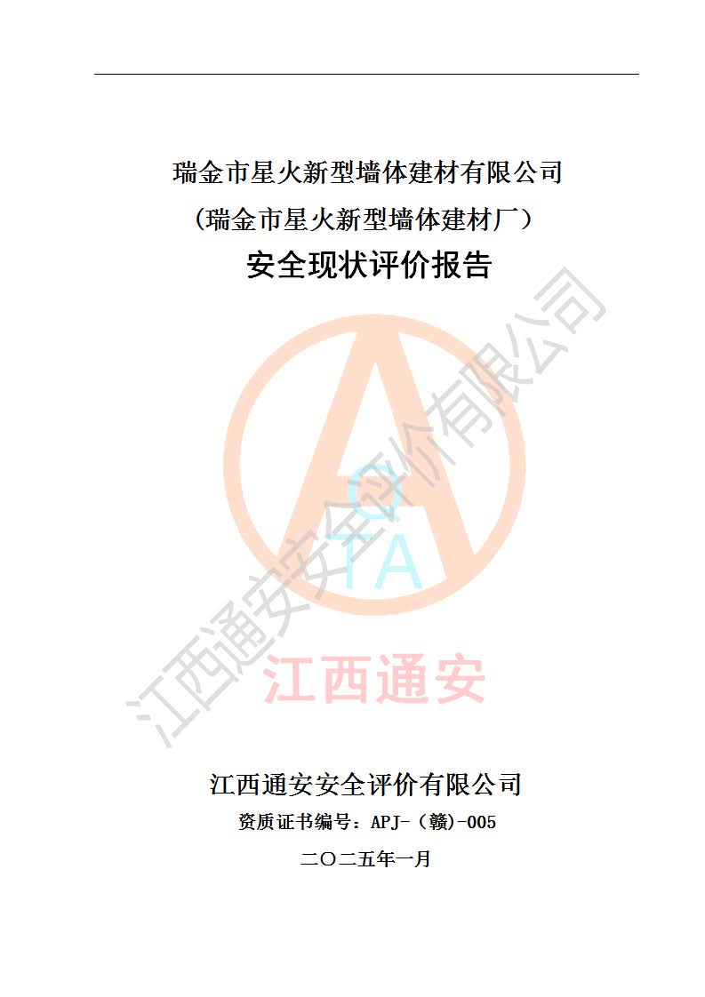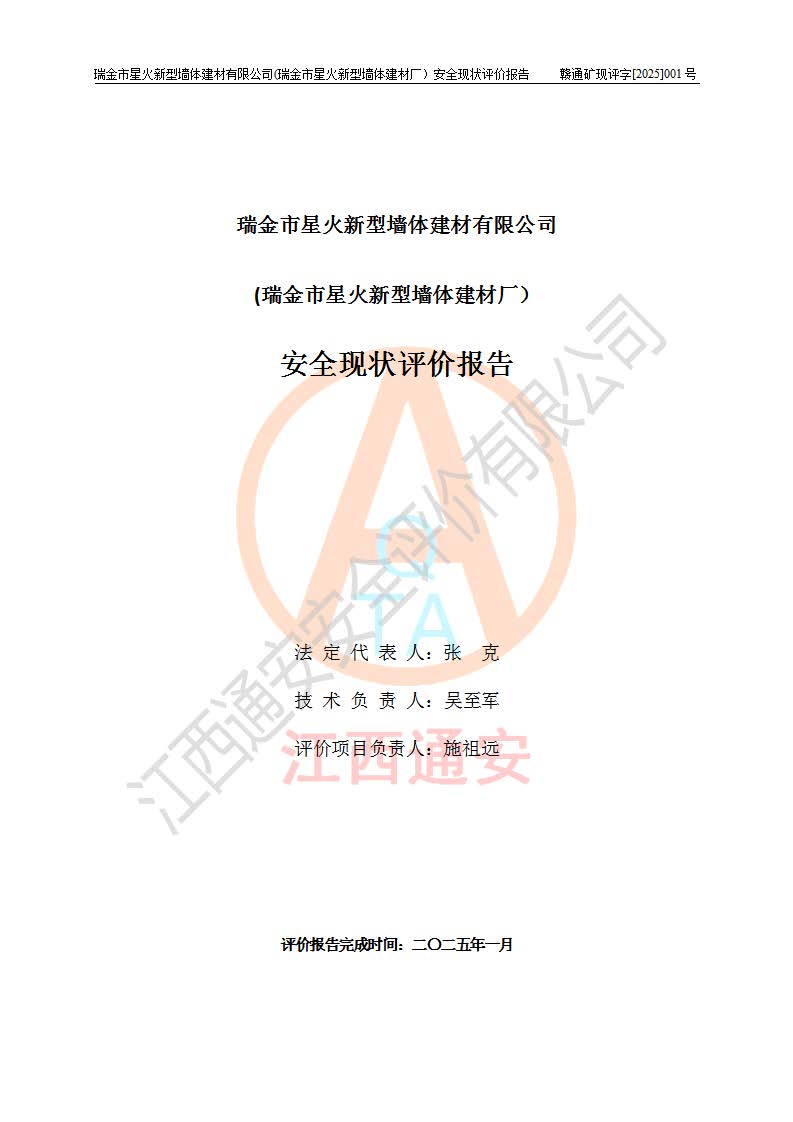 項(xiàng)目名稱 | 瑞金市星火新型墻體建材有限公司(瑞金市星火新型墻體建材廠)安全現(xiàn)狀評價報告 | ||||