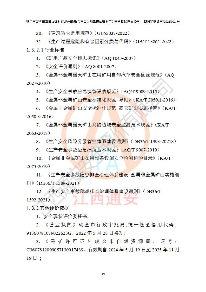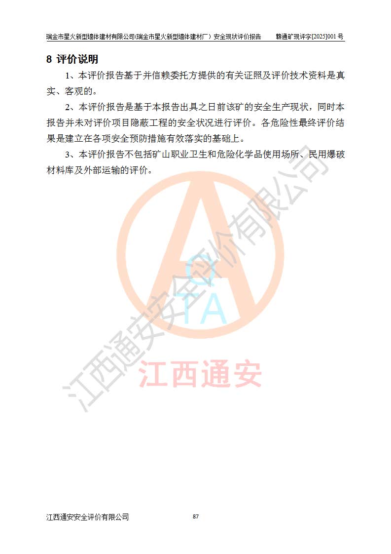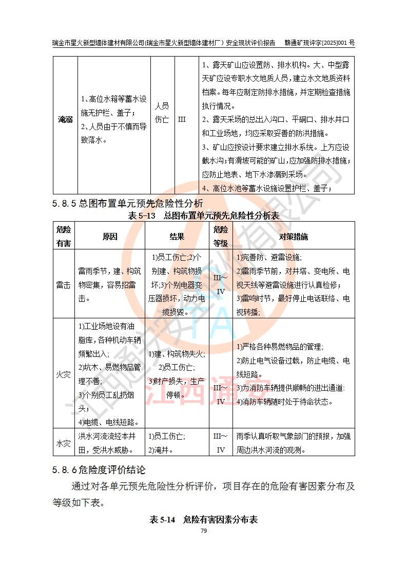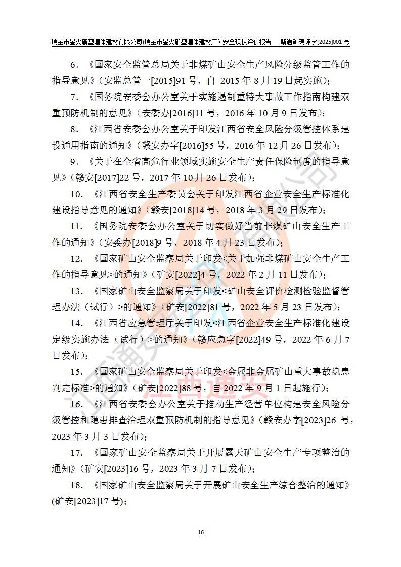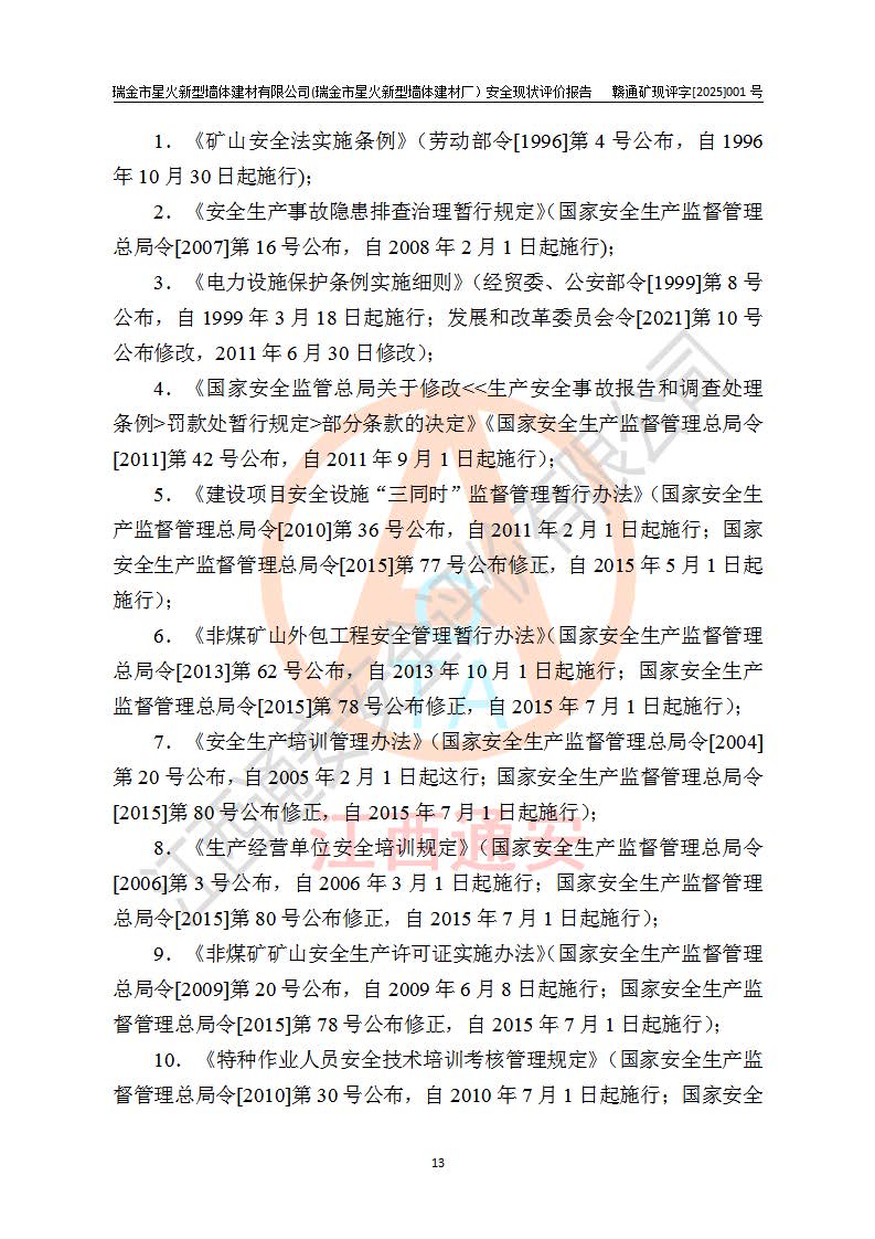 項(xiàng)目名稱 | 瑞金市星火新型墻體建材有限公司(瑞金市星火新型墻體建材廠)安全現(xiàn)狀評價報告 | ||||