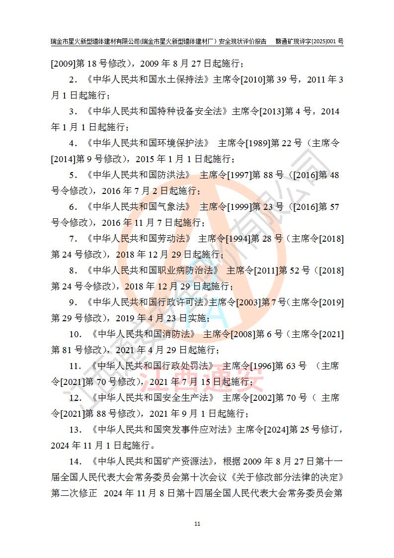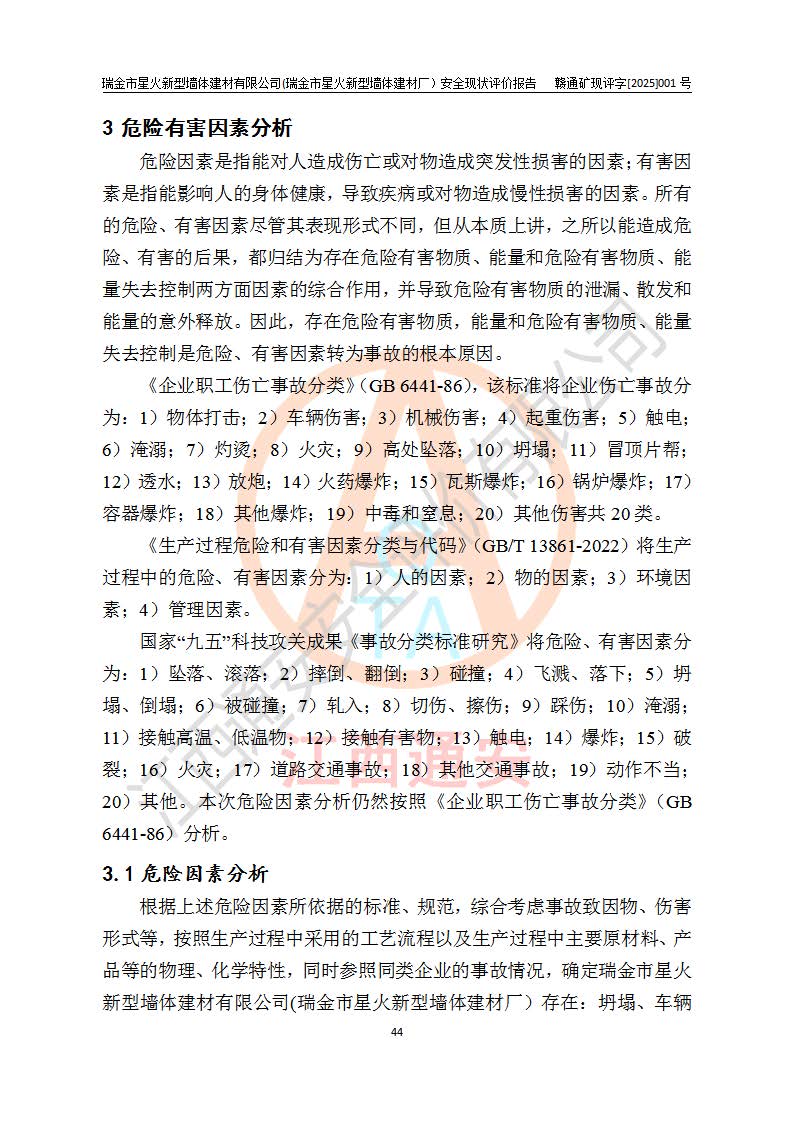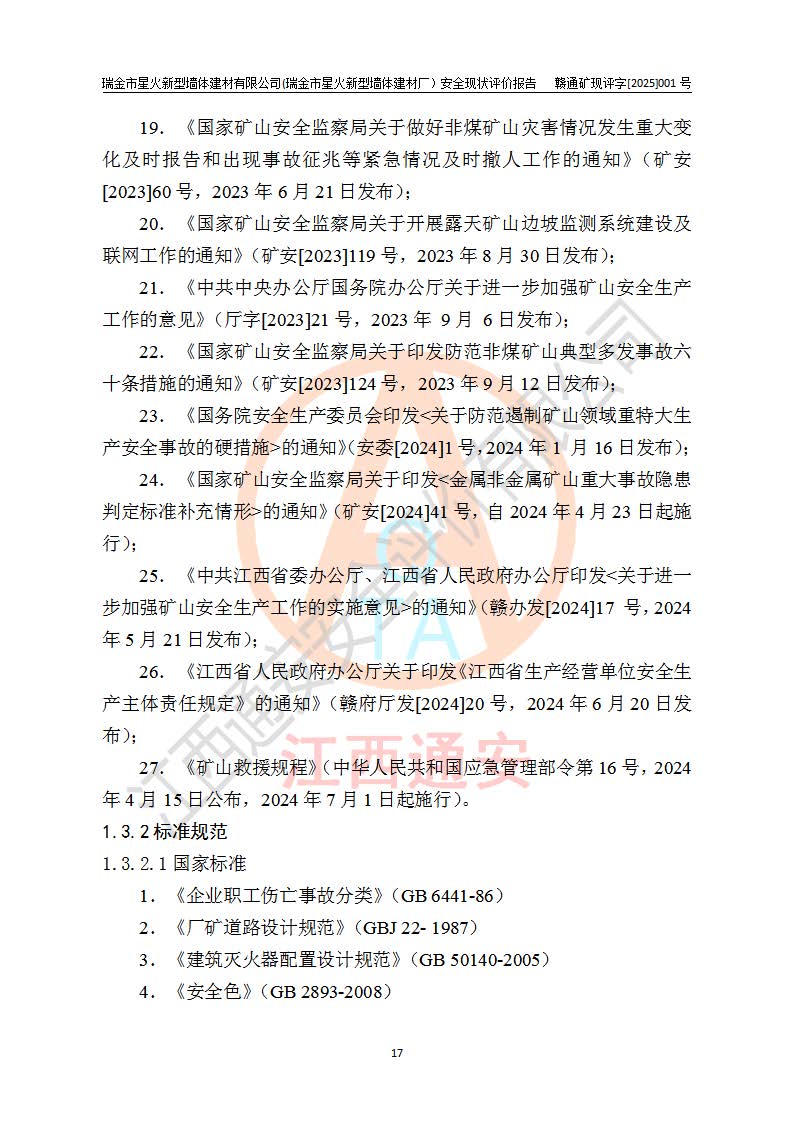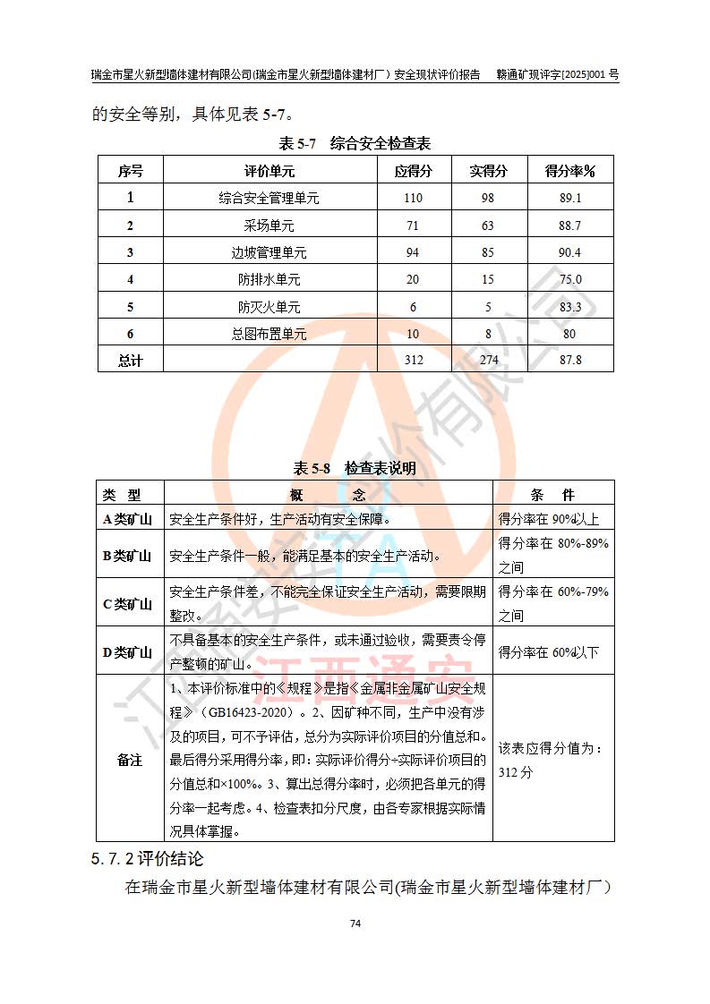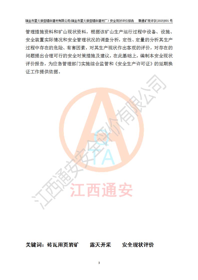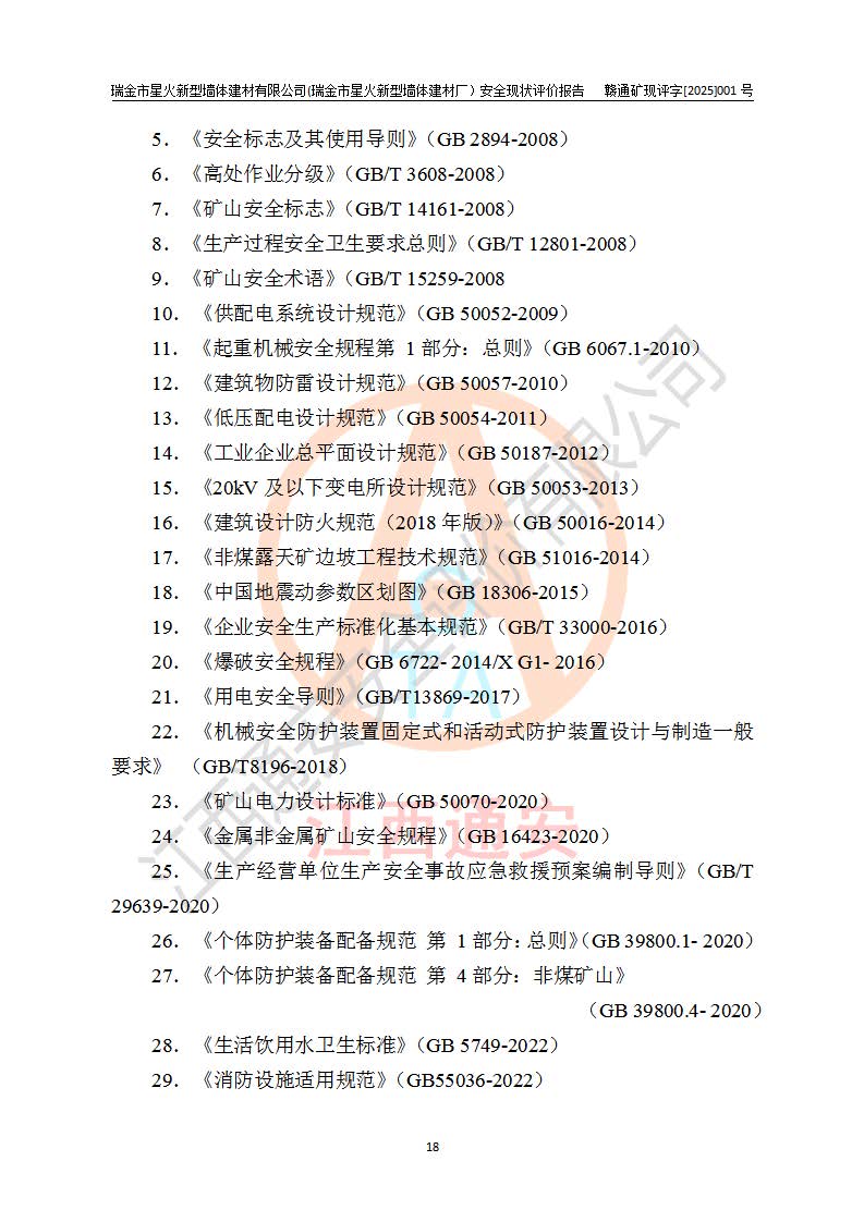 項(xiàng)目名稱 | 瑞金市星火新型墻體建材有限公司(瑞金市星火新型墻體建材廠)安全現(xiàn)狀評價報告 | ||||