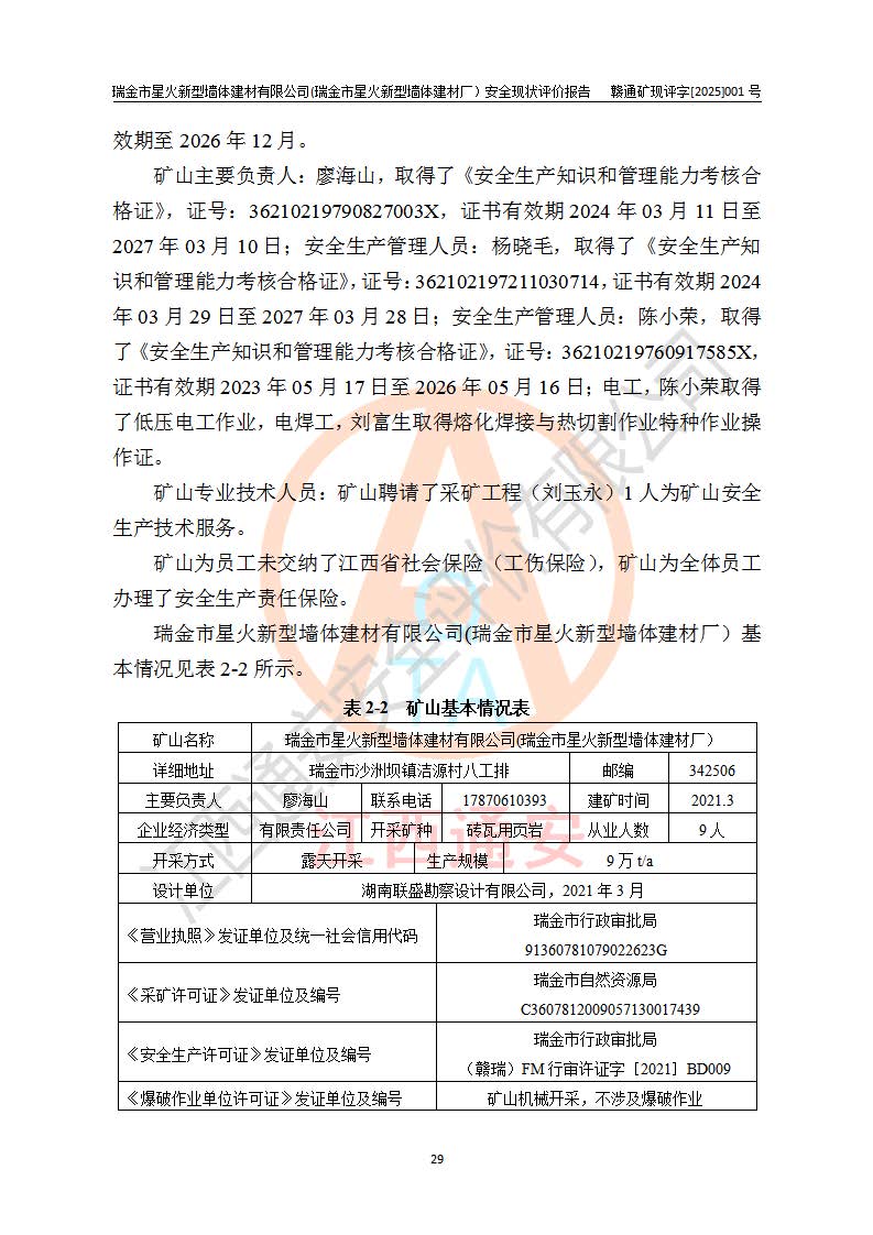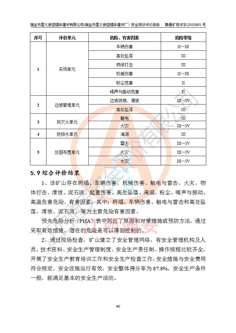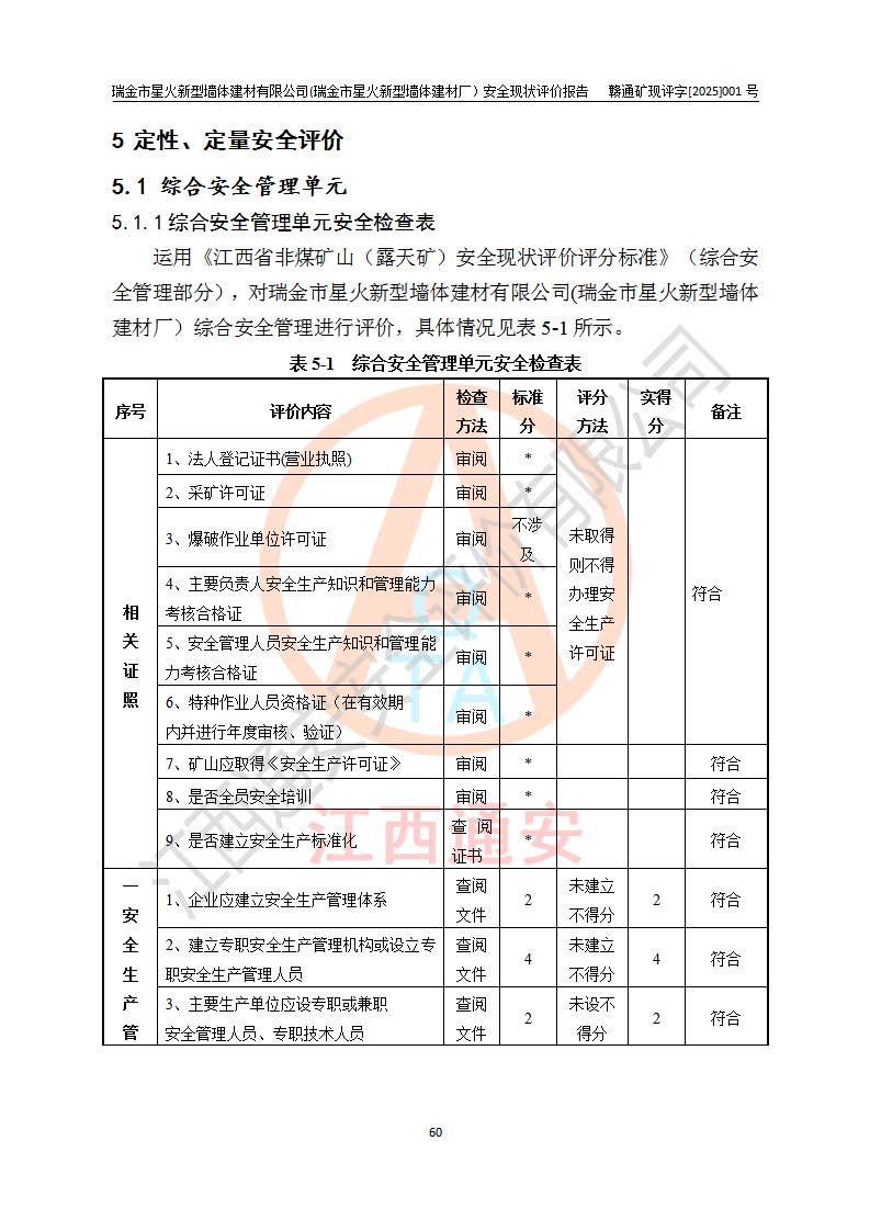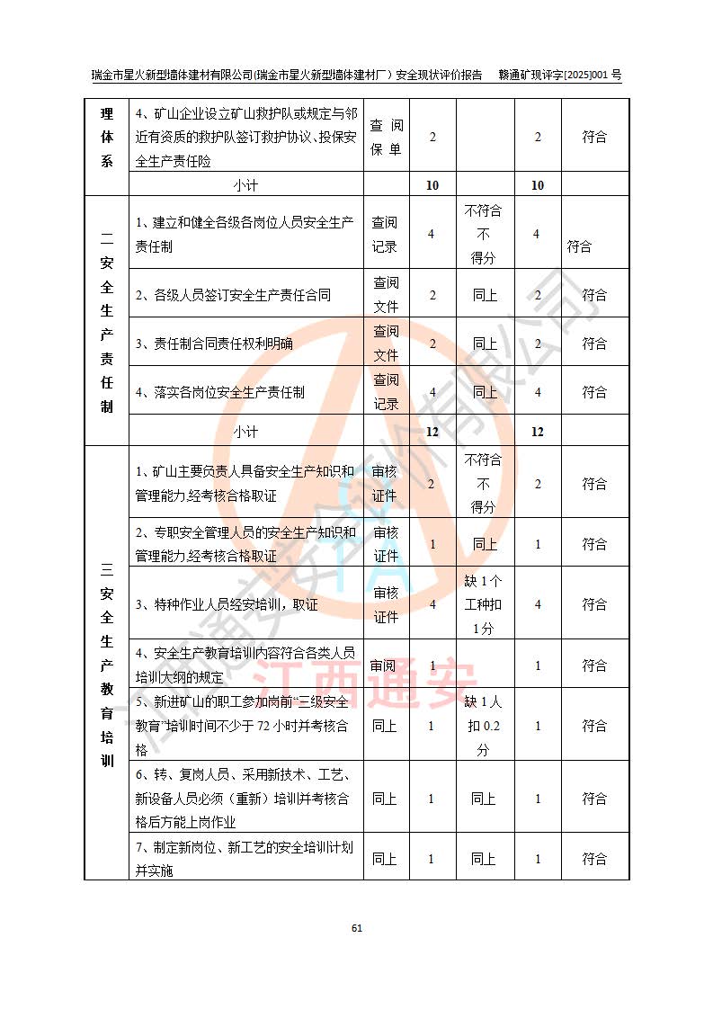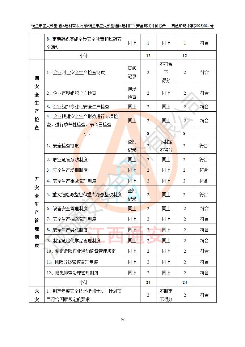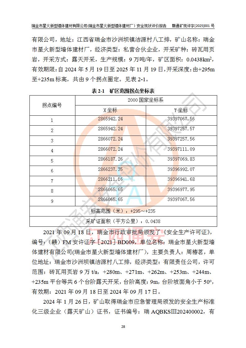 項(xiàng)目名稱 | 瑞金市星火新型墻體建材有限公司(瑞金市星火新型墻體建材廠)安全現(xiàn)狀評價報告 | ||||